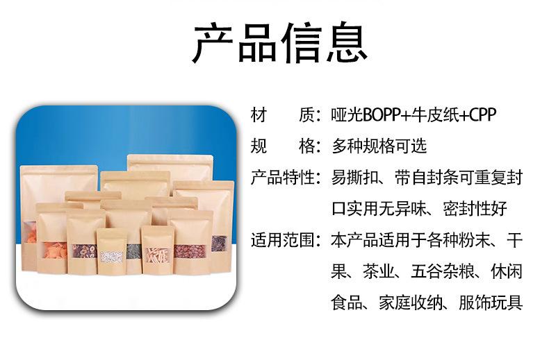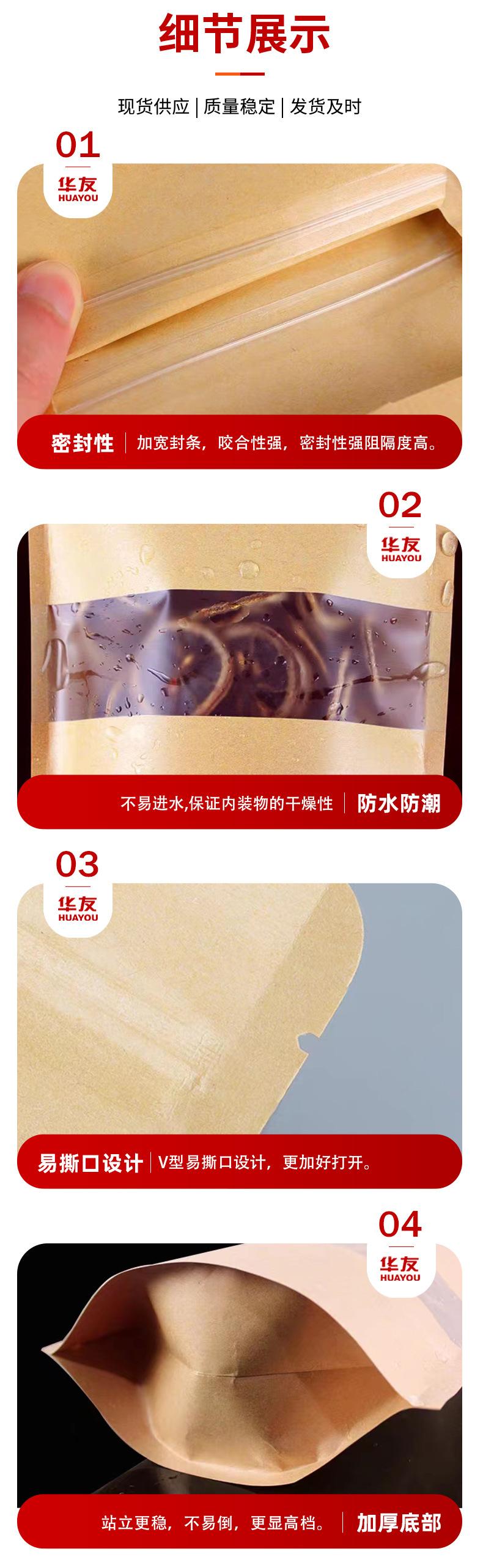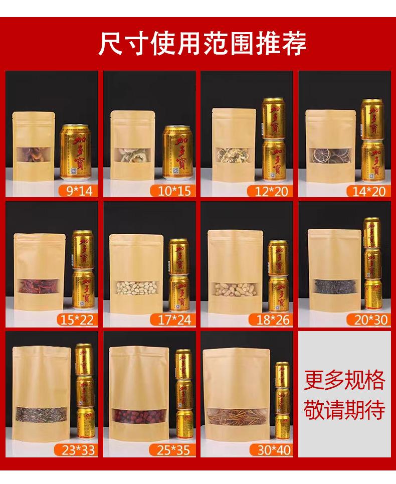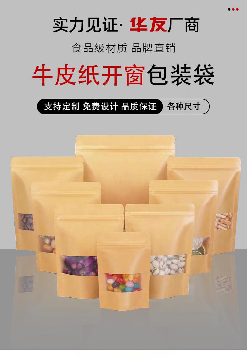Bolsa de papel kraft con ventana para bolsitas de té, bolsa de papel kraft esmerilado, bolsa autosellante, bolsa autoportante para envasado de alimentos, bolsa sellada para nueces
