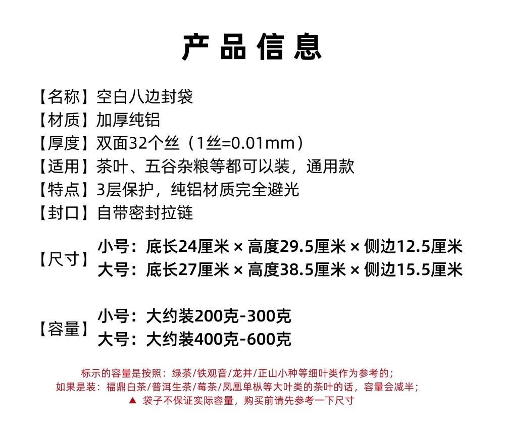 Bolsa de aluminio puro engrosada para envasar té, paquete de medio Jin, tamaño grande, a prueba de humedad, sellada, para té Pu-erh, té blanco, bolsa autosellada