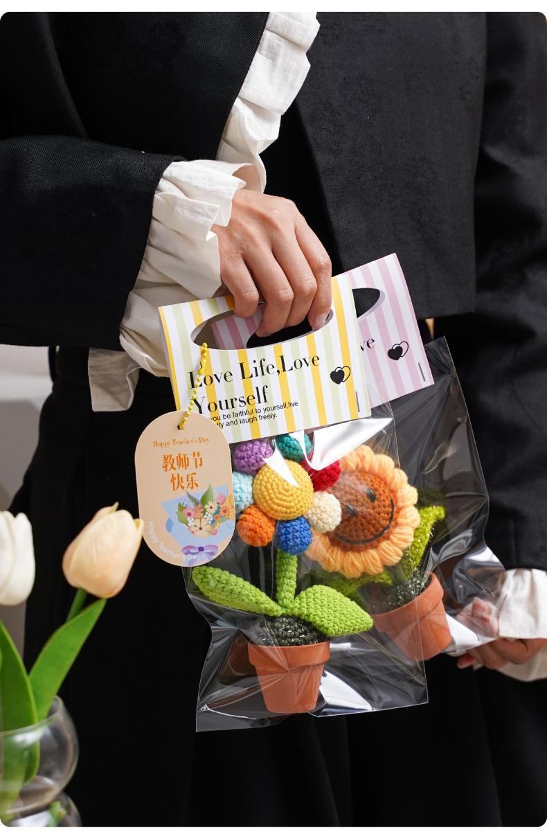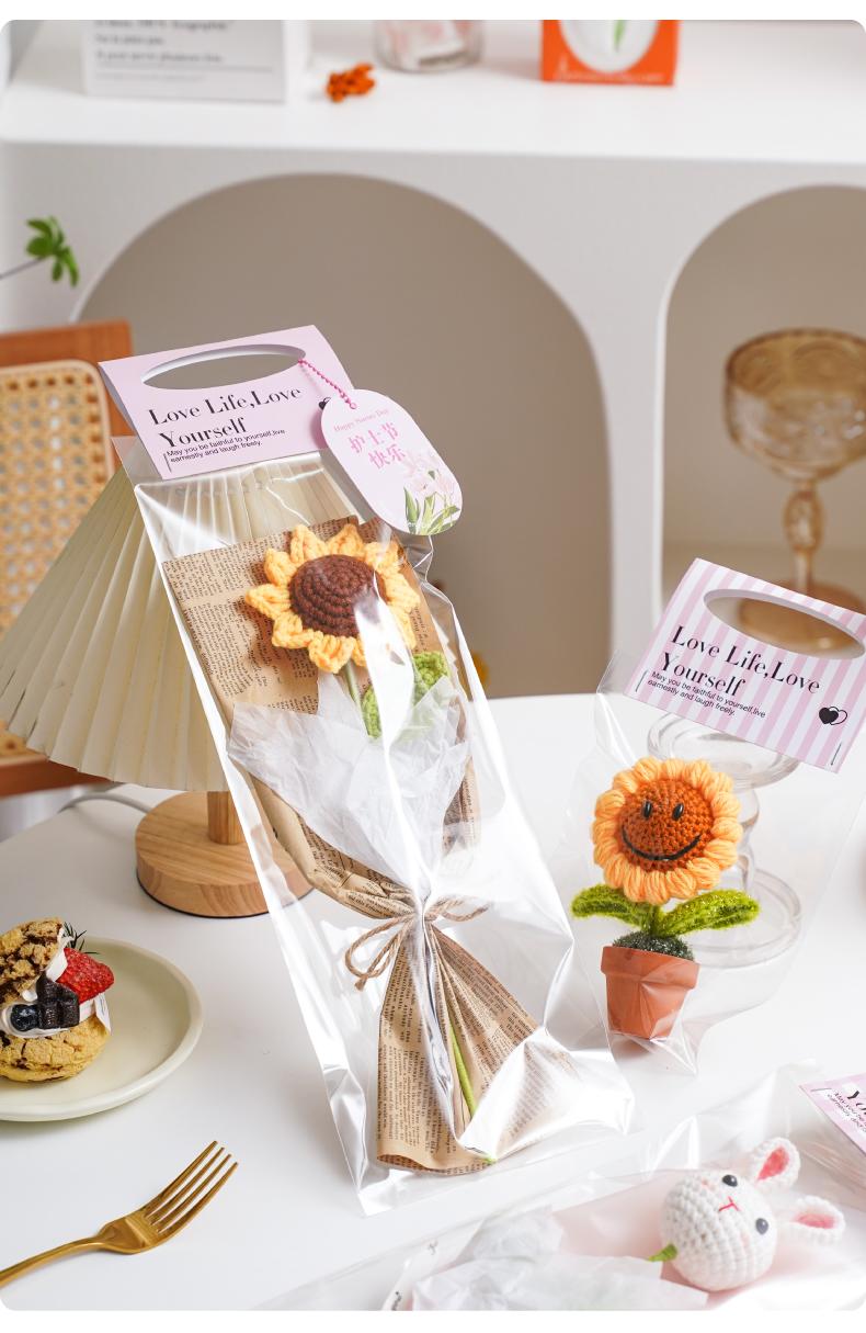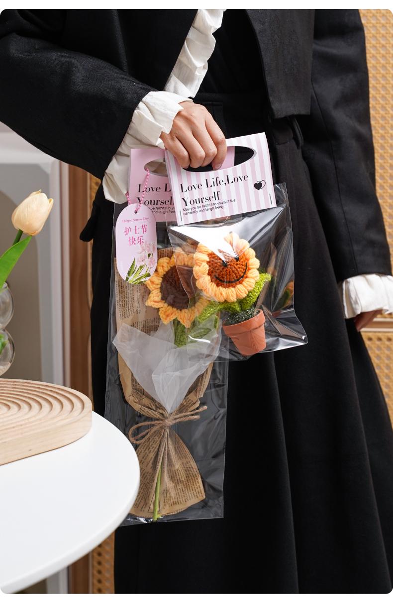 Bolsa de embalaje de flores portátil a color, bolsa de material transparente para ramo pequeño de una sola pieza, bolsa impermeable de mano para floristería