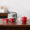 Set de Té Cerámico de Viaje Kung Fu para Beber Té en Camping al Aire Libre Rojo Gaiwan Taza Rápida Una Olla Tres Tazas Set de Regalo