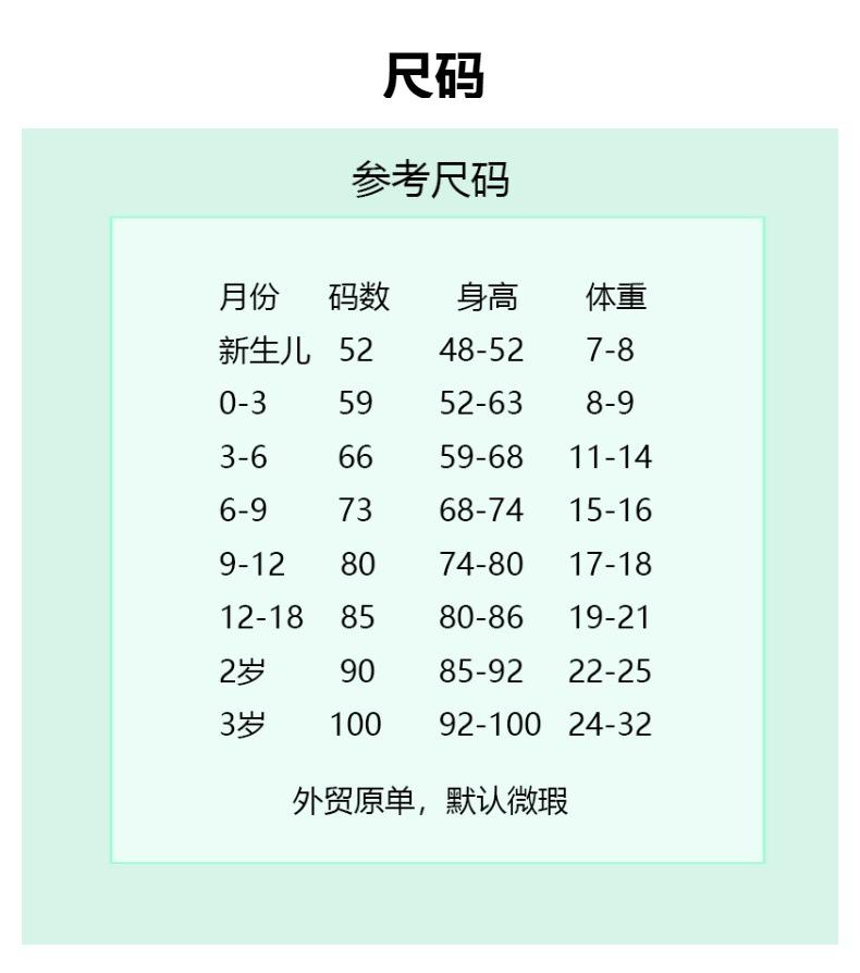 90cm -2 years old, 100cm -3 years old, 110cm--4 years old, 120cm--5 years old