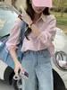 Camisa a rayas de manga larga para mujer, nueva llegada de primavera y otoño de 2025, estilo coreano, blusa Mystal, diseño de mujer, sentido de nicho, tendencia.