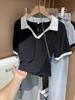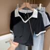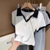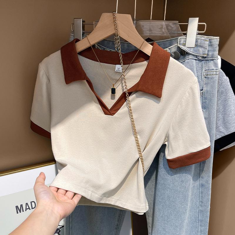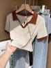 Camiseta polo con hombros descubiertos y cuello en V para mujer, manga corta, verano 2025, talla pequeña