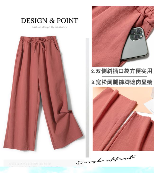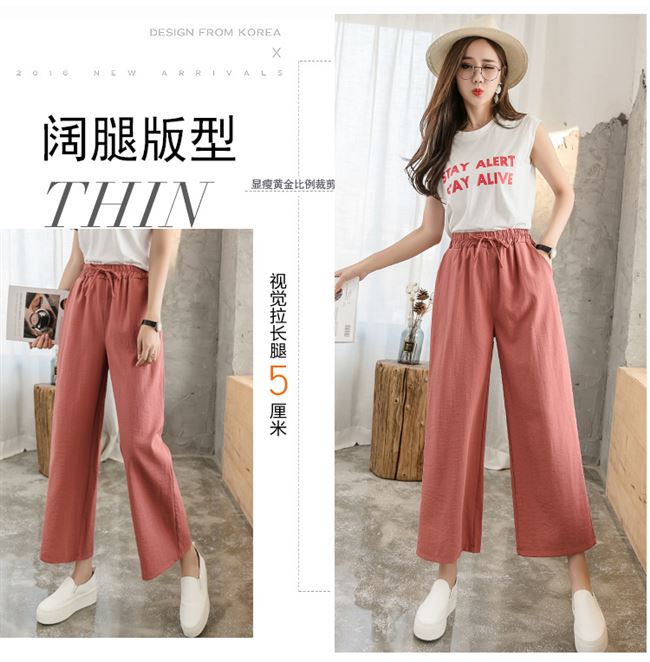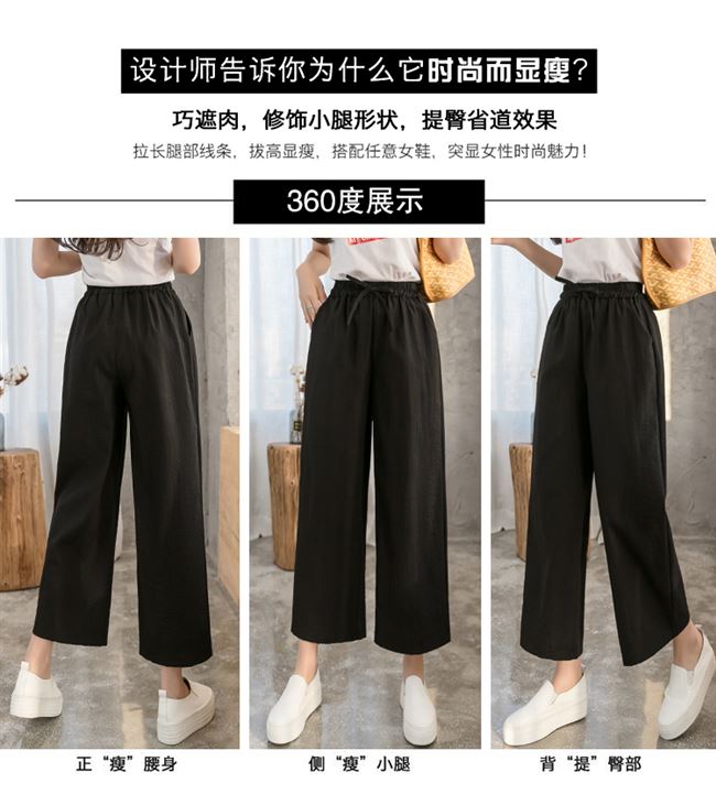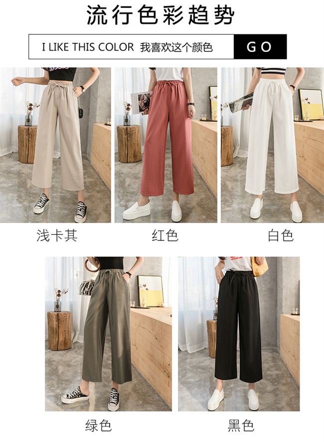 Pantalones de pierna ancha 2023 para mujer, pantalones rectos de cintura alta sueltos de verano, versión coreana, pantalones delgados informales con pliegues de nueve puntos, comercio exterior