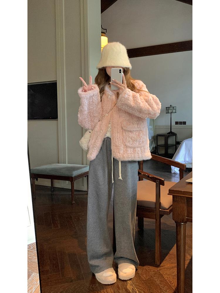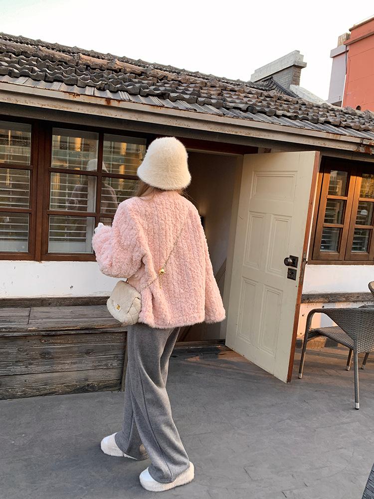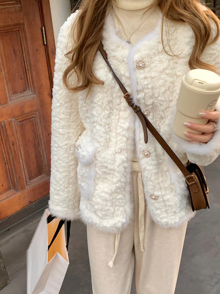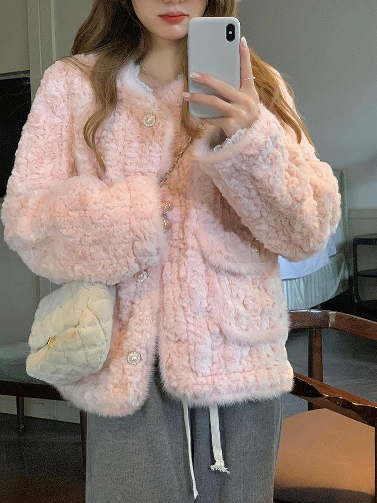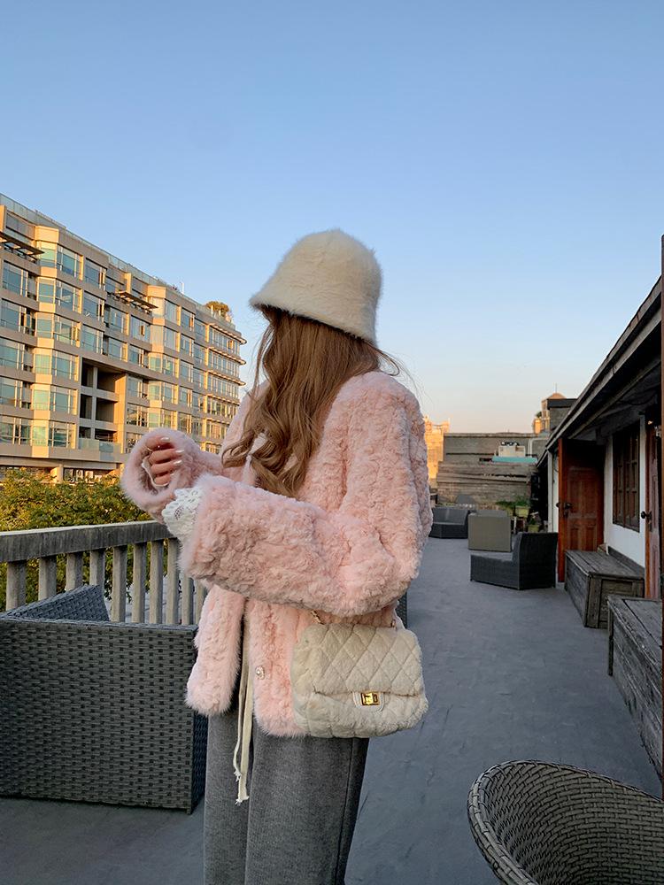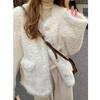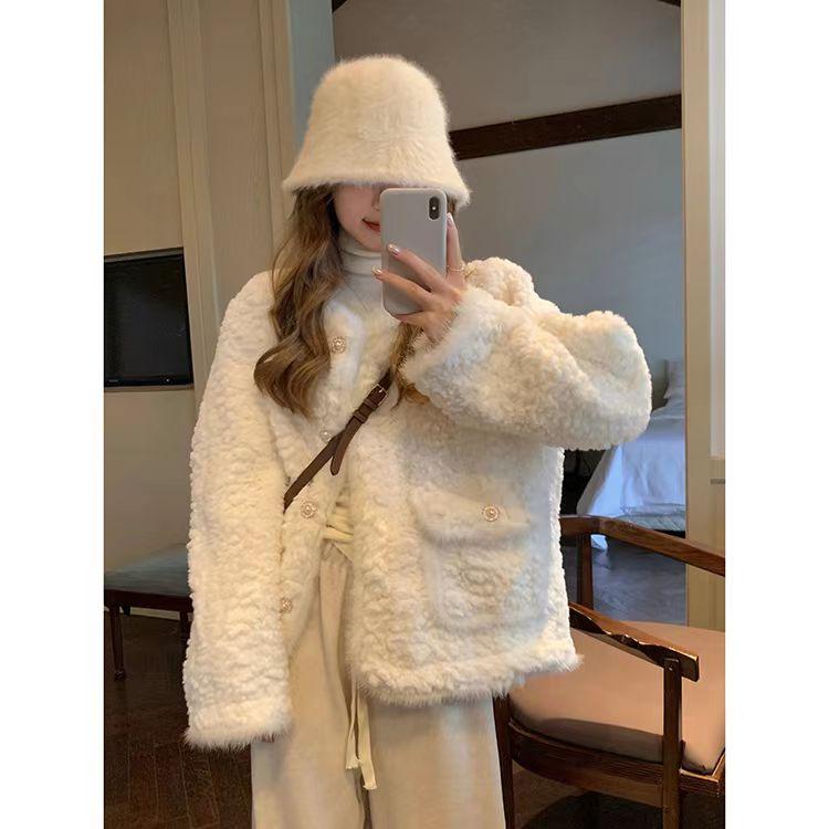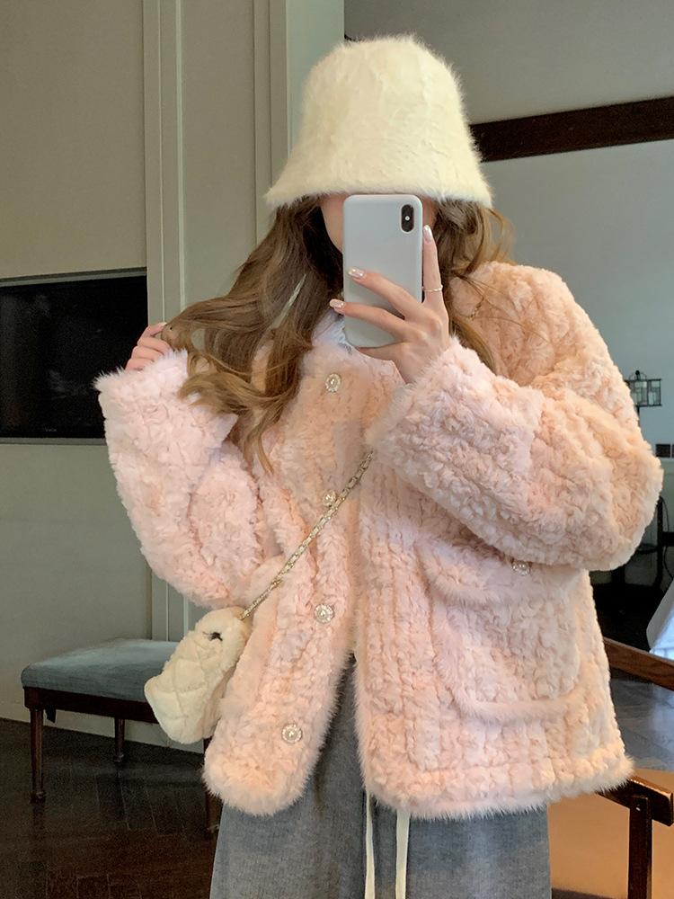 Abrigo corto de piel sintética de conejo para mujer en otoño e invierno 2025, nuevo look holgado y adelgazante, top de felpa cálido y grueso