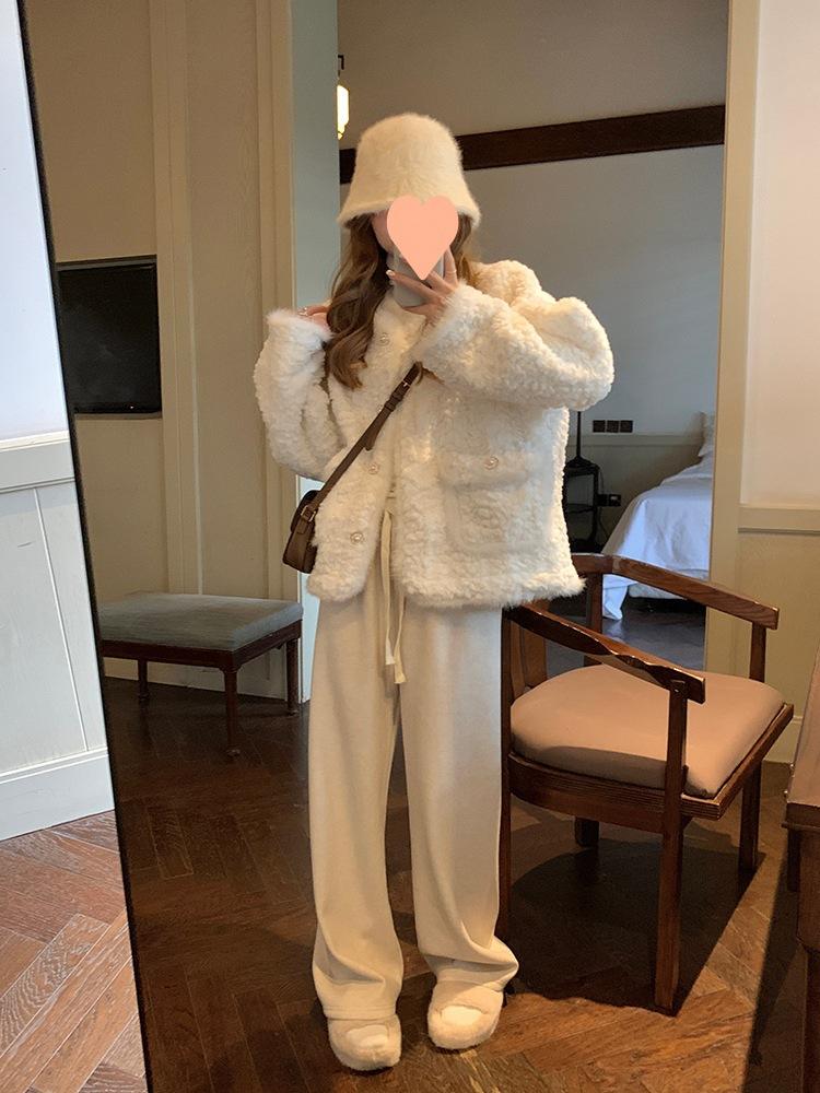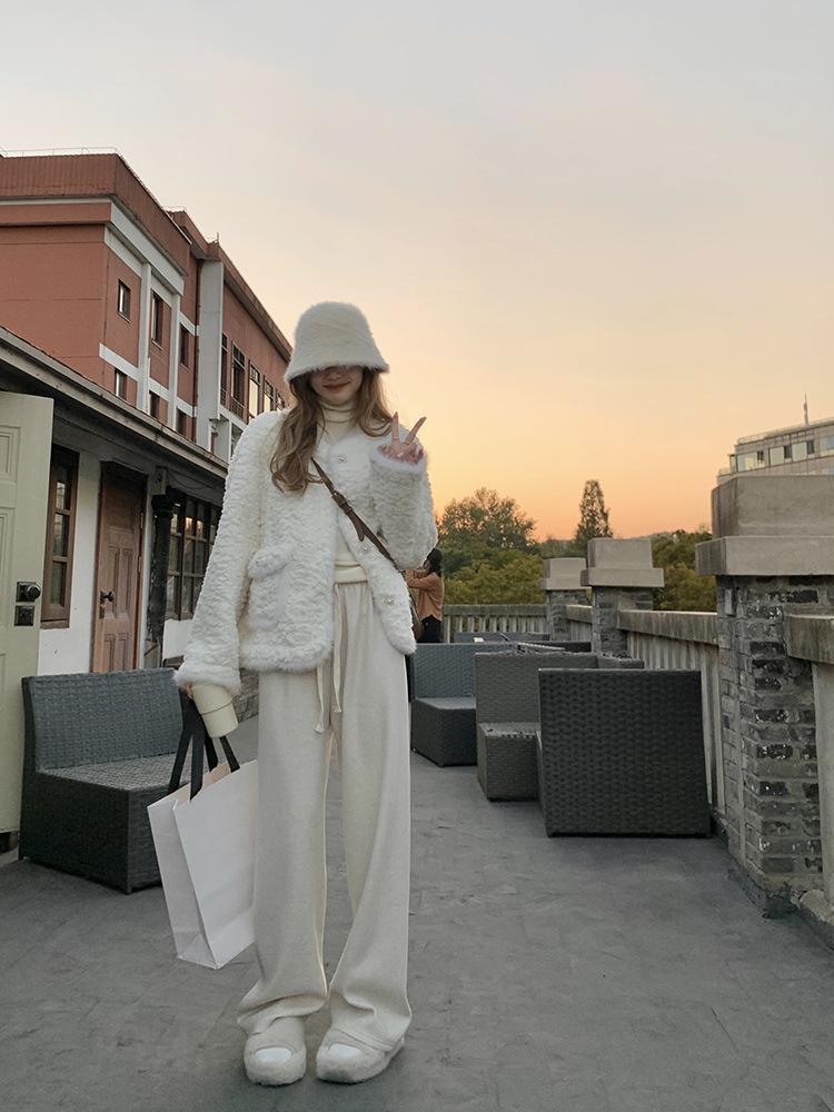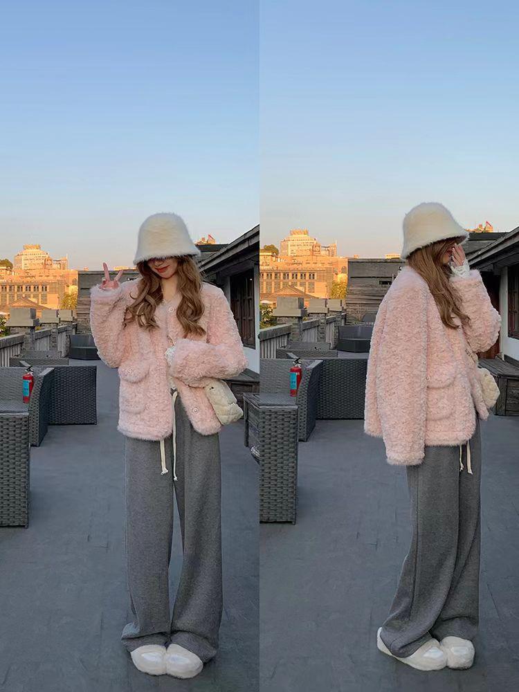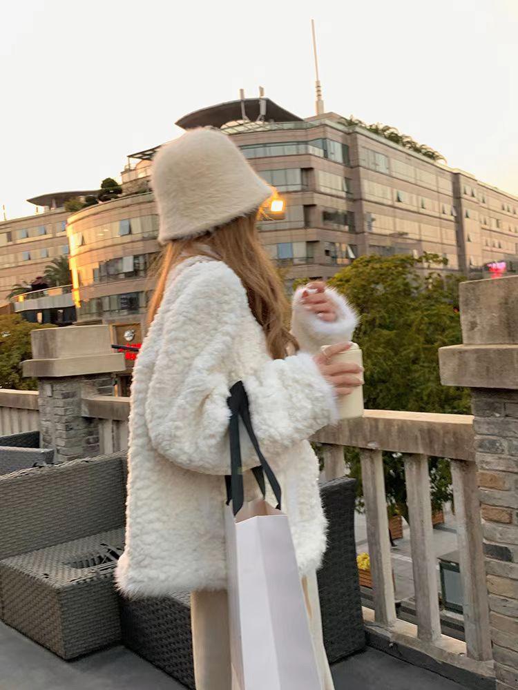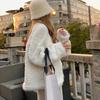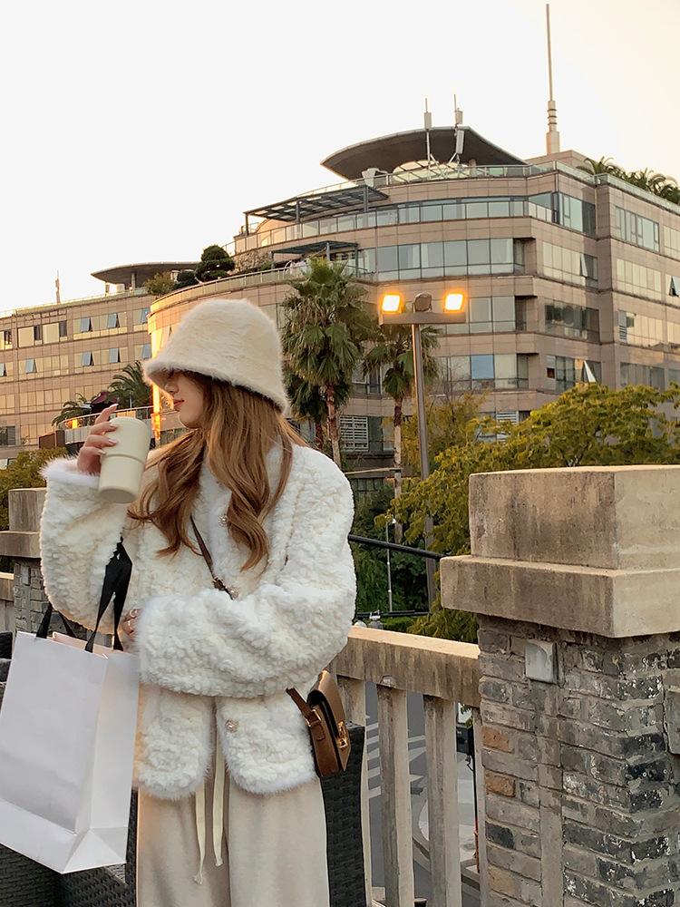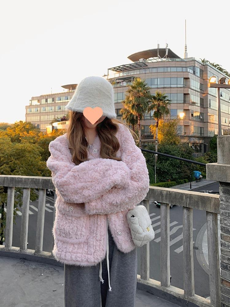 Abrigo corto de piel sintética de conejo para mujer en otoño e invierno 2025, nuevo look holgado y adelgazante, top de felpa cálido y grueso