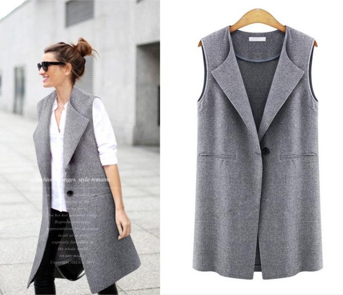 Primavera y Otoño Nuevo Moda Europea y Americana Talla Grande Chaleco de Mujer de Un Botón/Chaleco para chica gordita
