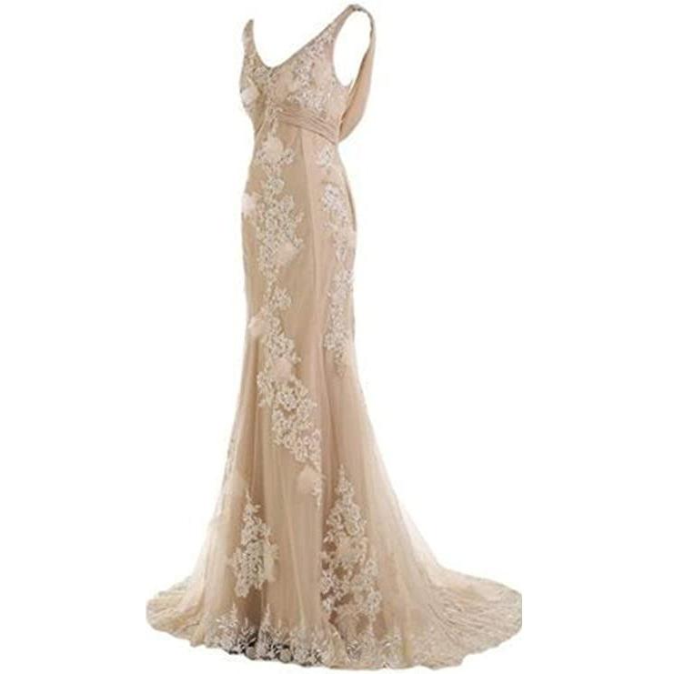 Vestido de novia cola de pez estilo europeo otoño e invierno nuevo vestido de novia principal encaje de hombro sin mangas sin espalda mori vintage cola