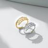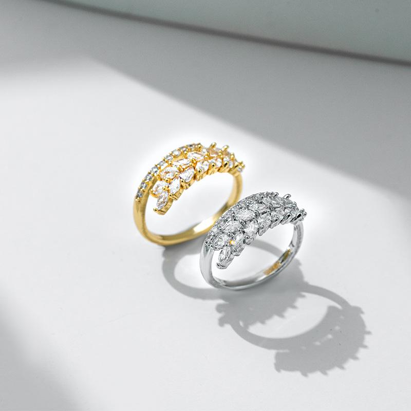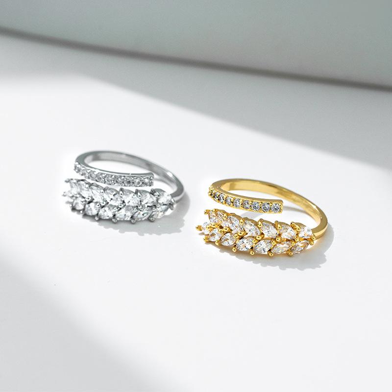 Exquisito anillo abierto de circonita con forma de oreja de trigo para mujer, diseño de nicho, anillo de lujo ligero, chapado en cobre, oro lleno de diamantes, joyería al por mayor
