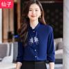 Camisa de primavera y otoño para mujer, de manga larga, combinable, holgada y elegante, de gasa de alta gama, para negocios, de cuello blanco, estilo occidental, camisa pequeña.