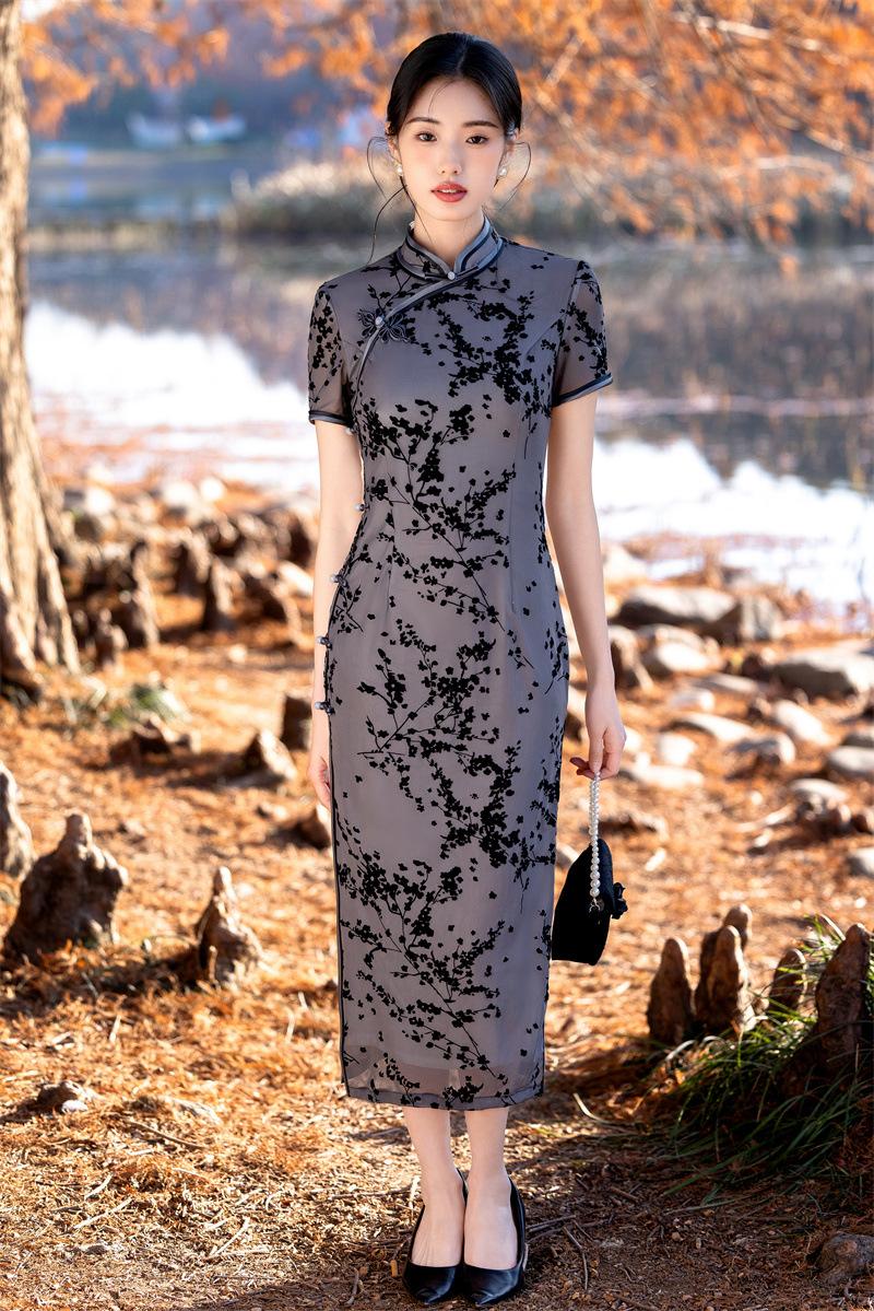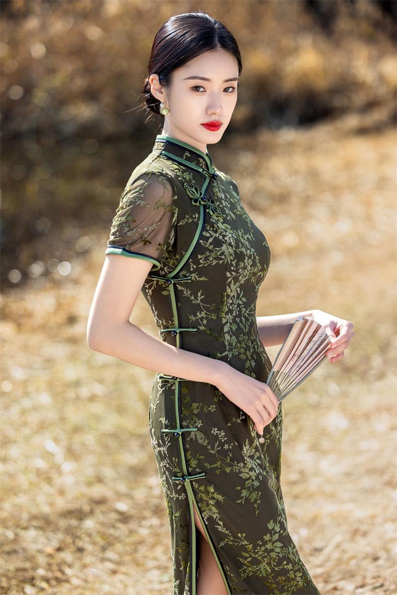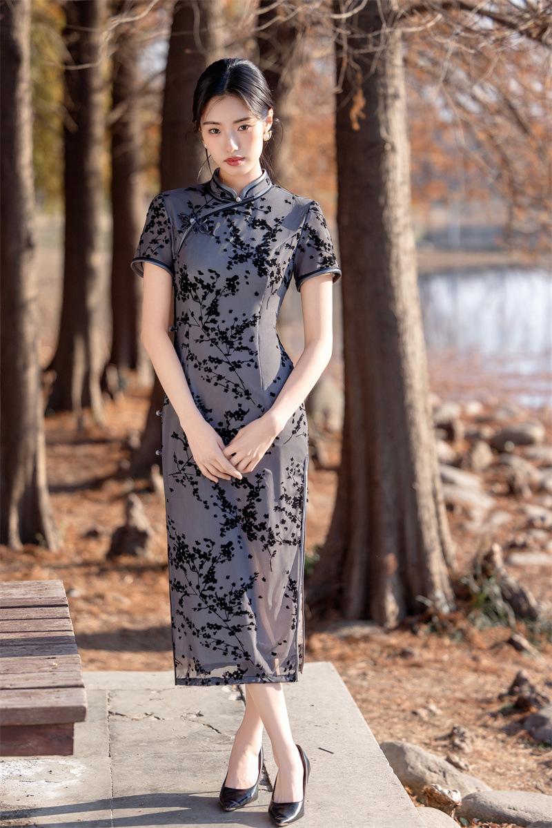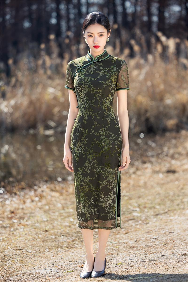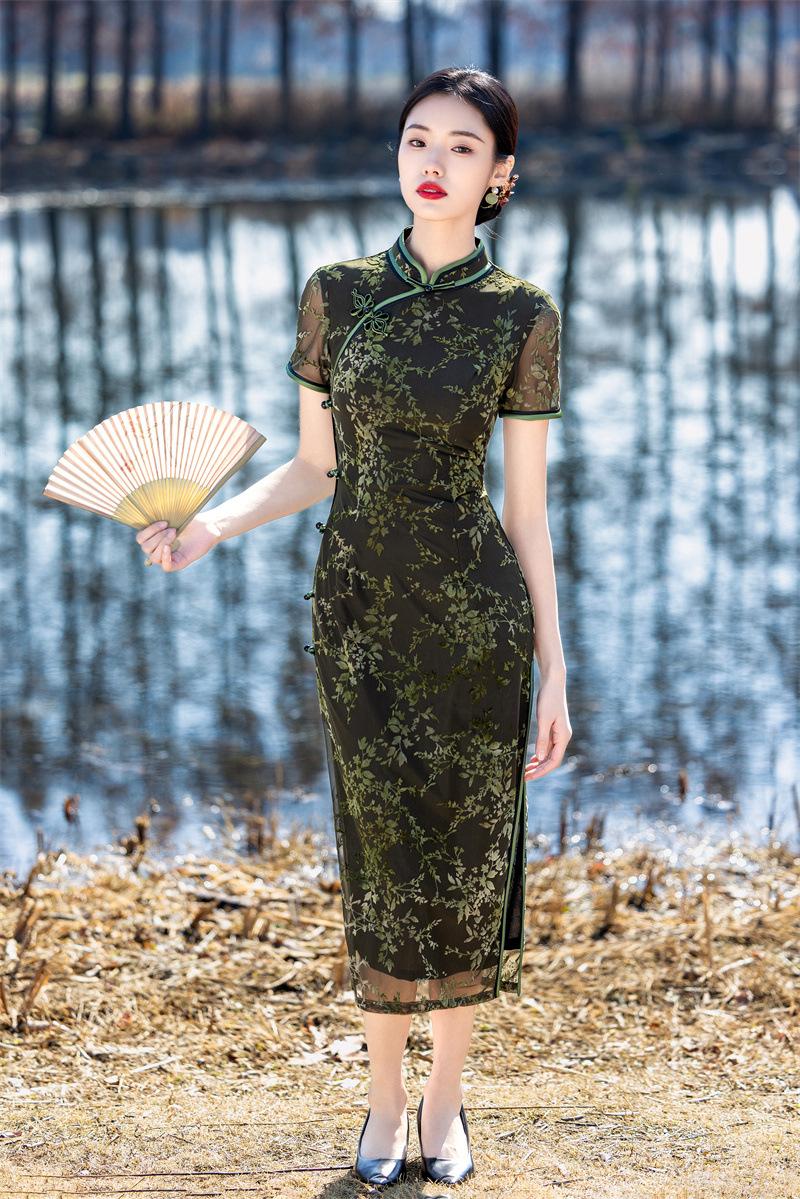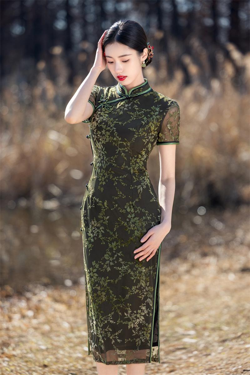 Características:Cheongsam nuevo, tela, textura suave, buena caída, no se encoge, no se decolora, no hace bolitas, ligera elasticidad, más característico de la nación china, bienvenido a comprar,