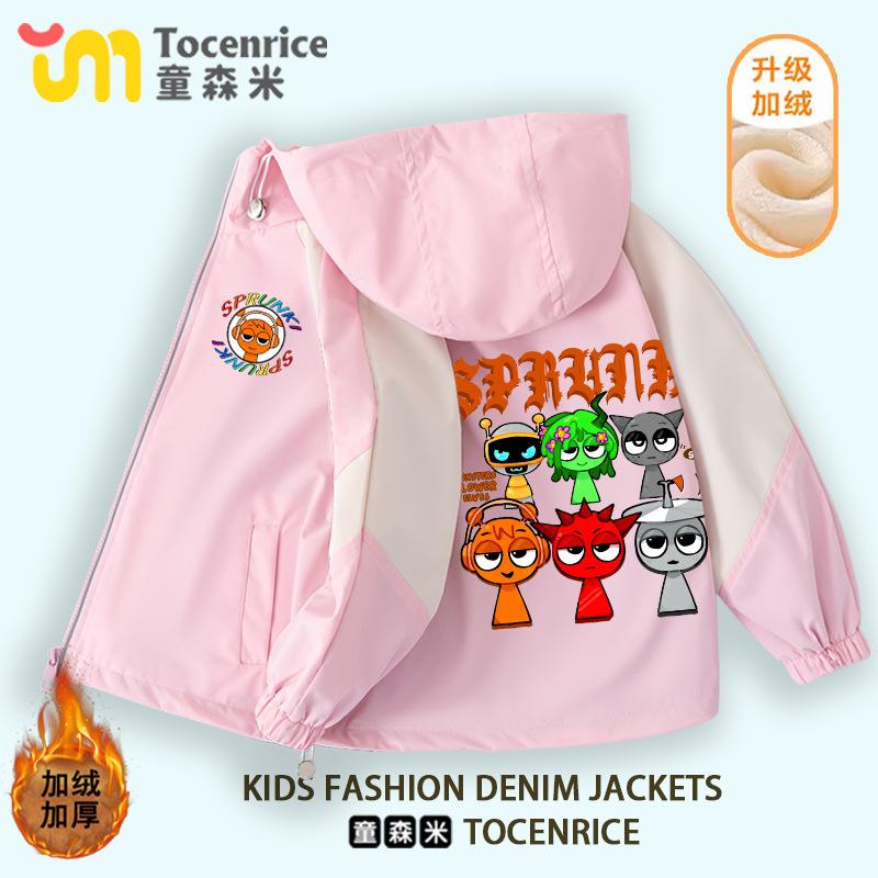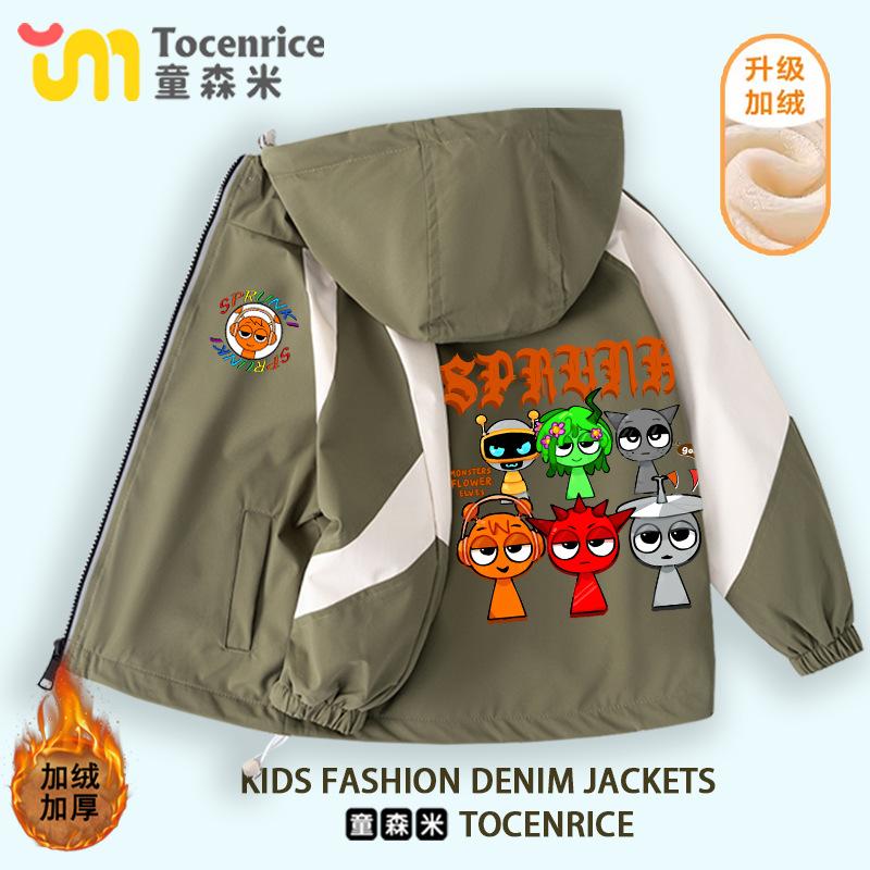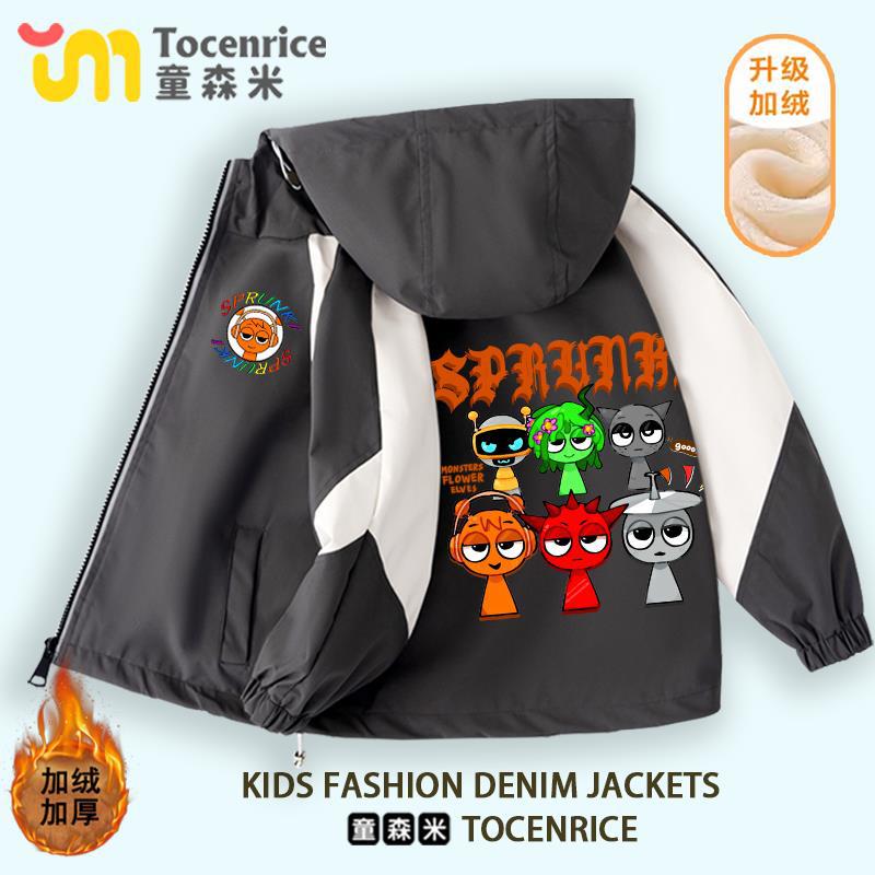 Ropa Rhythm Box Abrigo para niños Niños y niñas Otoño e Invierno Forrado con vellón A prueba de viento Con capucha Ropa de carga Todo fósforo Dibujos animados De moda
