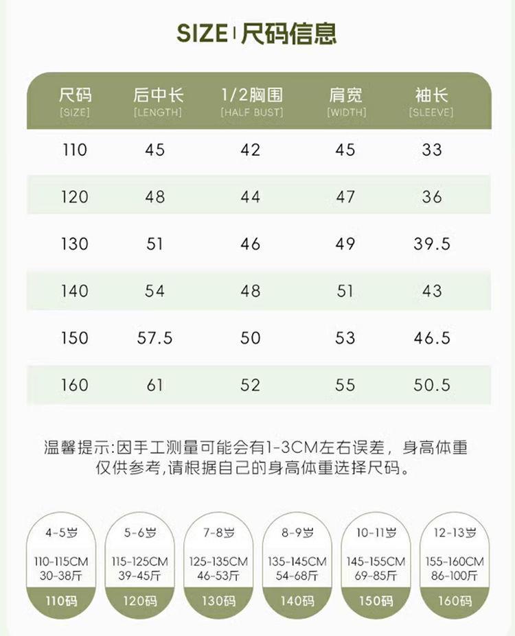 110cm, 120cm, 130cm, 140cm, 150cm, 160cm