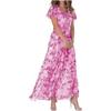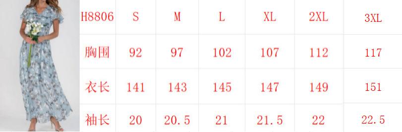 Vestido playero de gasa con estampado floral, manga corta, cuello en V y volantes, estilo europeo y americano, 2024