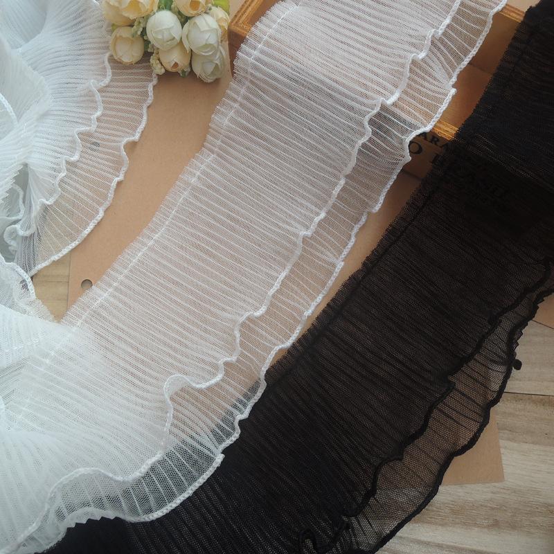 Encaje plisado doble encaje accesorios plisado ropa dobladillo mangas decorativas diy hecho a mano 9cm