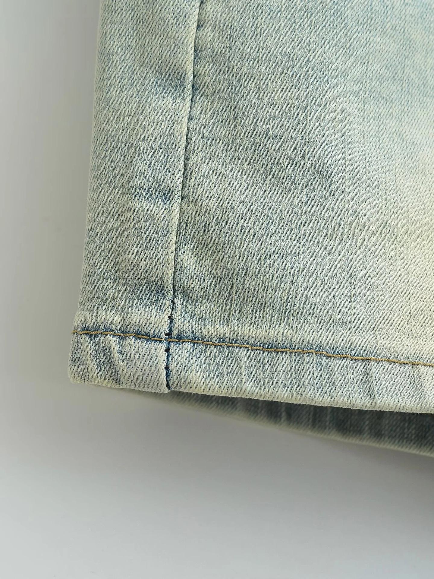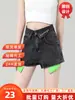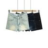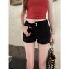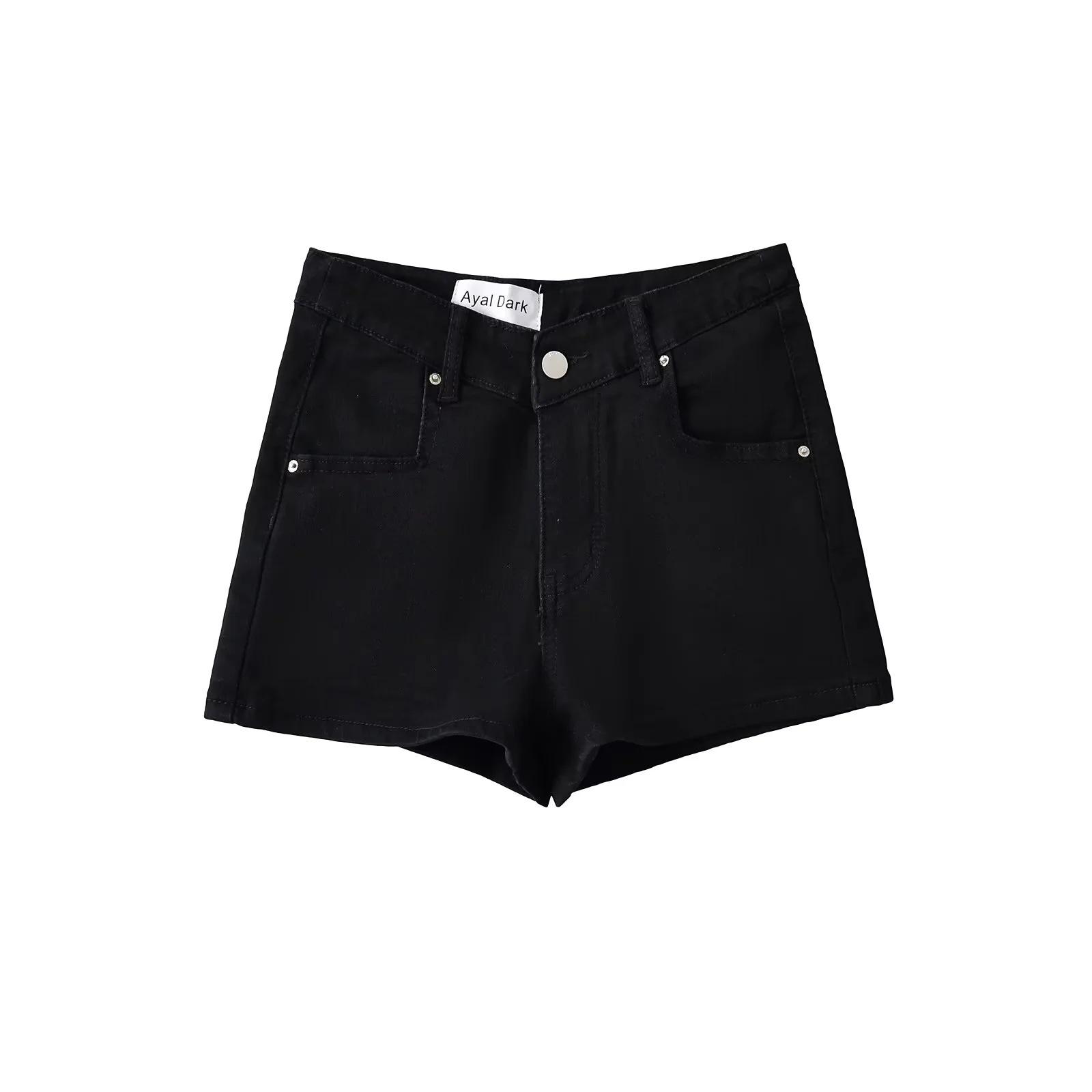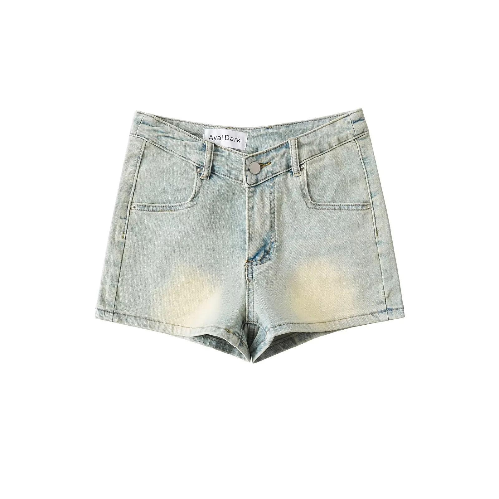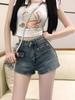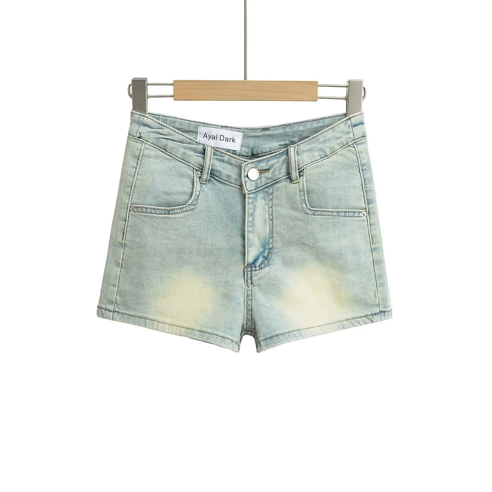 Pantalones cortos vaqueros retro americanos de verano para mujer, nuevos pantalones cortos de cintura alta en forma de A para chicas atractivas.