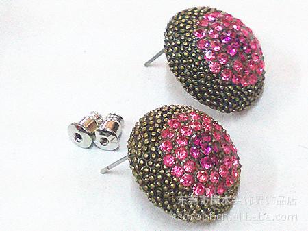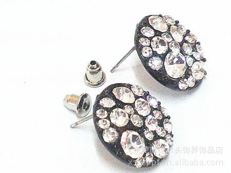 Exquisitos y exquisitos pendientes redondos de fondo negro, súper brillantes, exóticos, de cristal, no convencionales, coreanos.