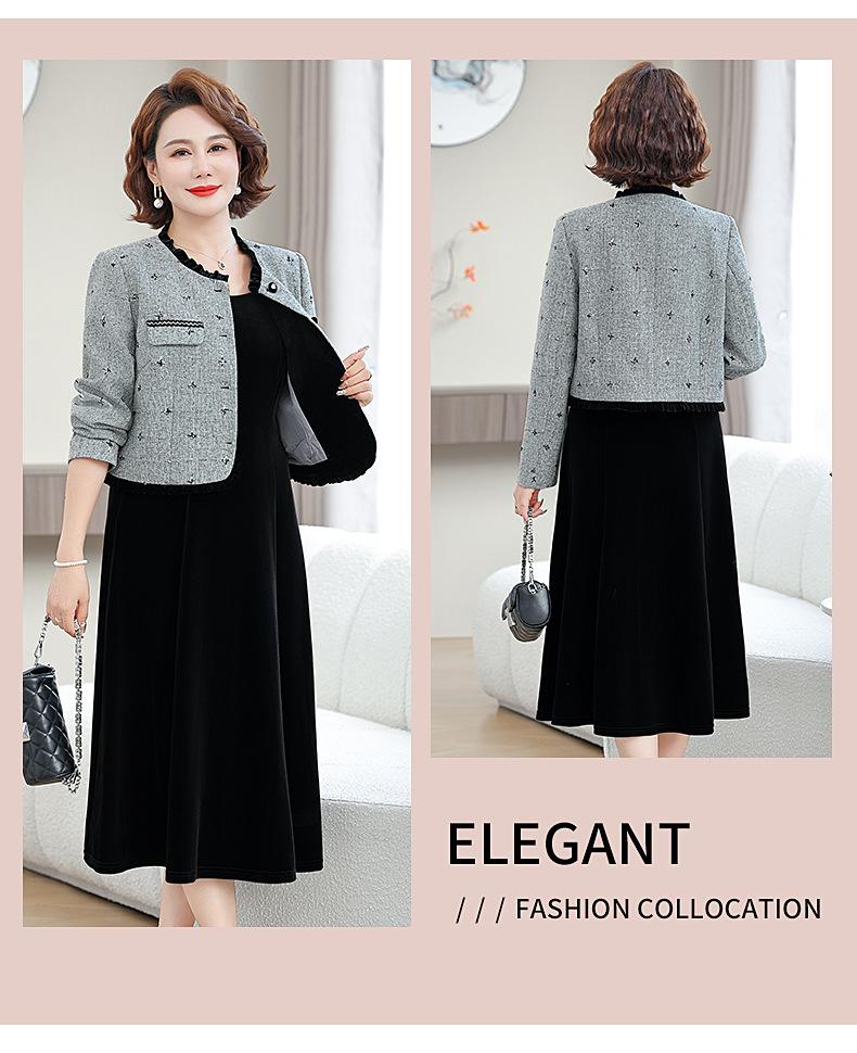 Traje de otoño para madre de mediana edad, conjunto noble de dos piezas para mujeres de mediana edad y mayores, chaqueta de traje de estilo pequeño y fragante de primavera y otoño