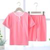 Pijama de seda de algodón para mujer, de verano, fino, de manga corta, tipo cárdigan, estilo coreano, fresco, transpirable, de seda de algodón, ropa de casa.