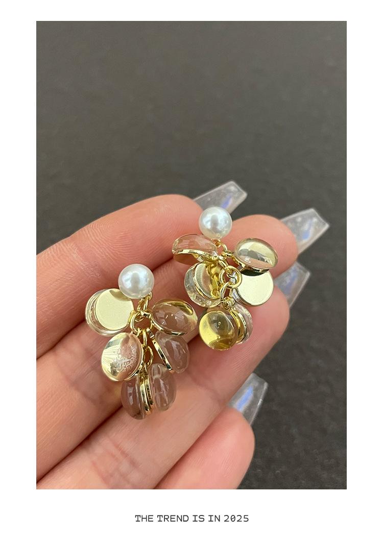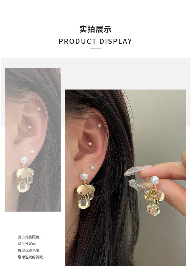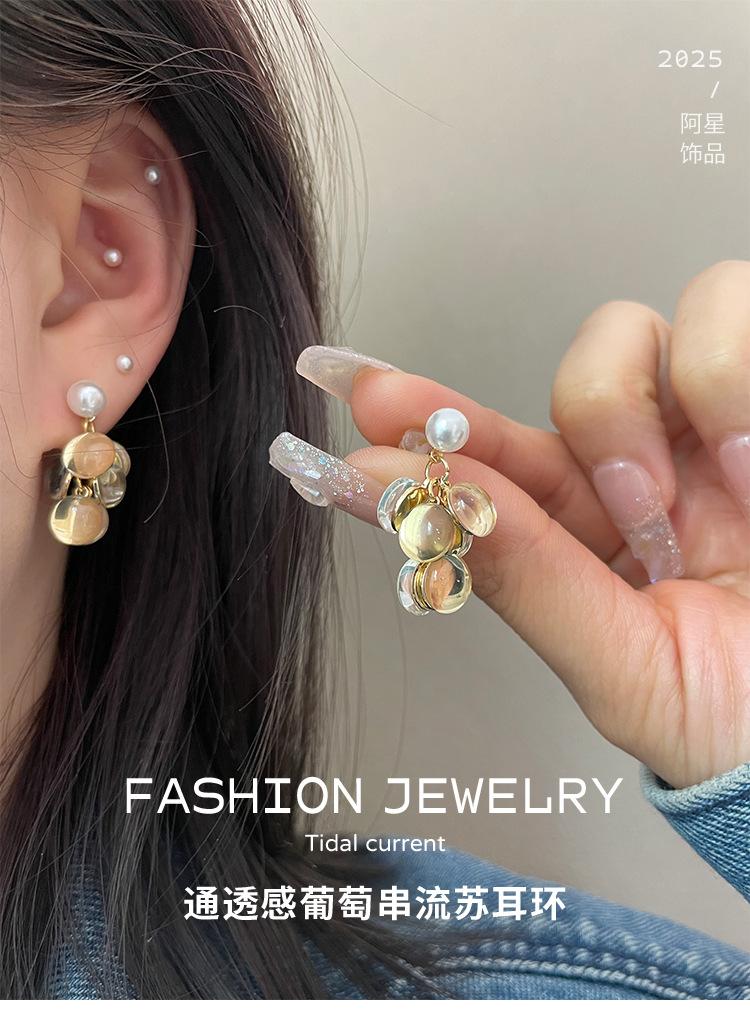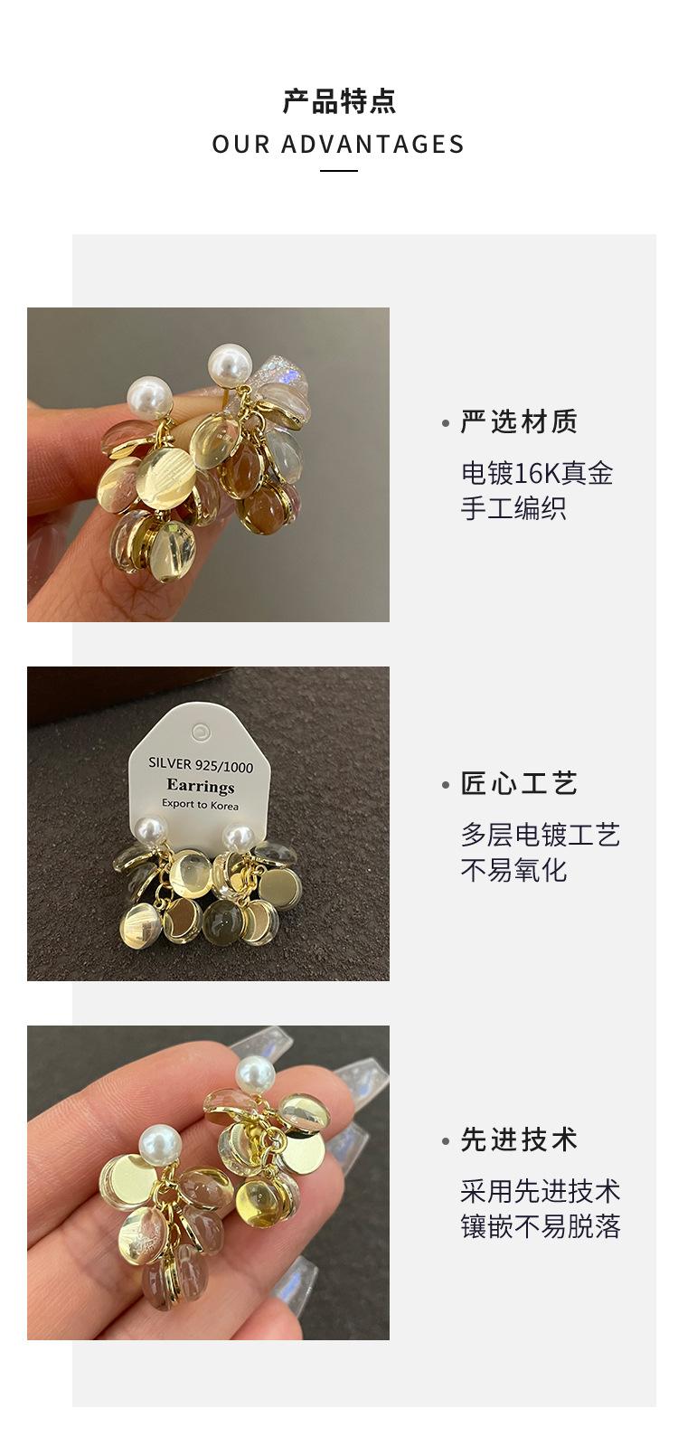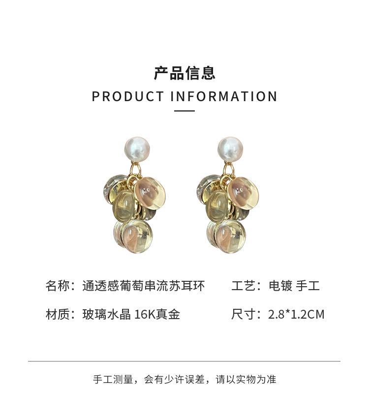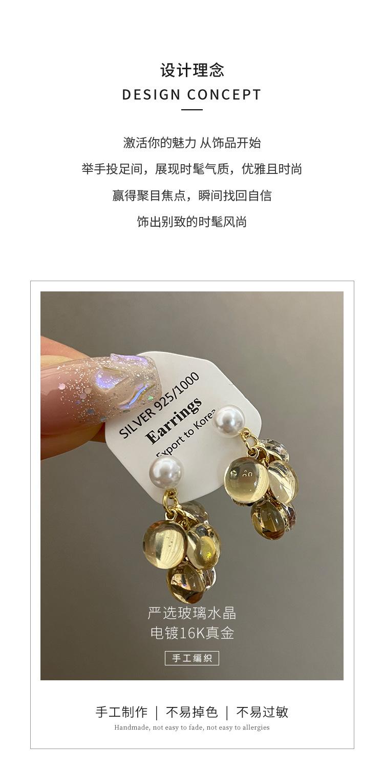 Pendientes de borla con hilo de uva permeable de oro auténtico de 16 quilates galvanizados, pendientes personalizados de moda, pendientes de botón avanzados de nicho