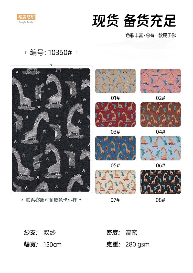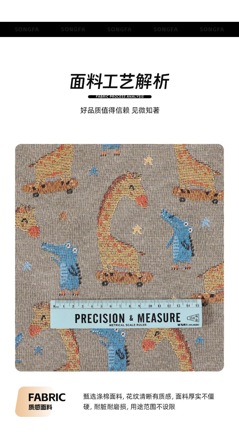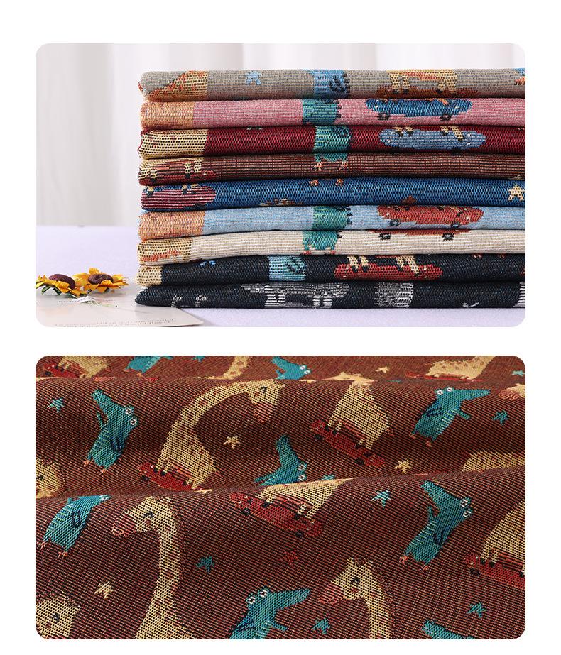 Tela jacquard teñida con hilo de poliéster y algodón, con estampado de dibujos animados, tela con diseño de jirafa, para equipaje, zapatos, sombreros y ropa.