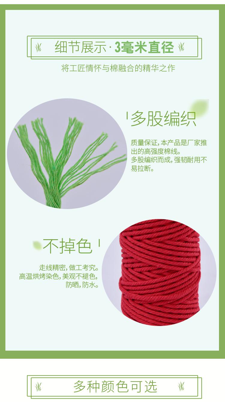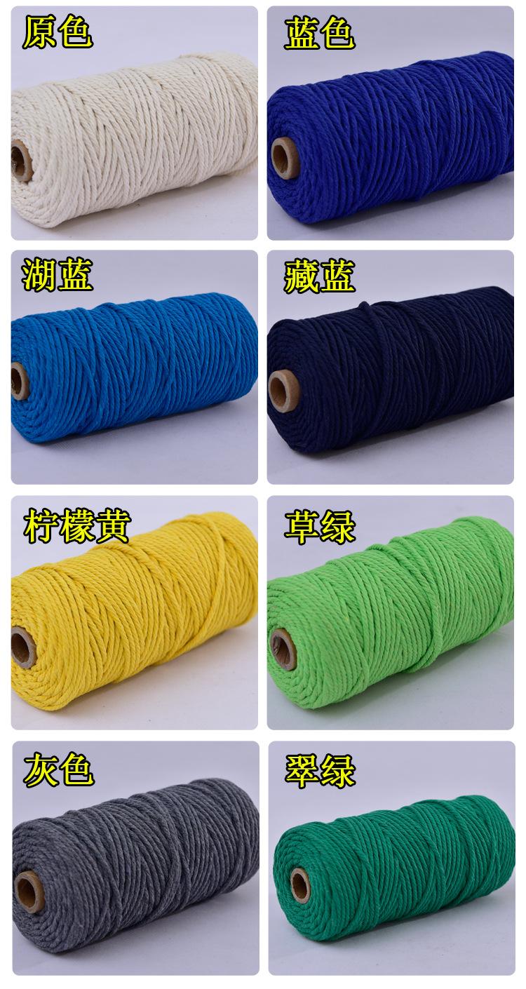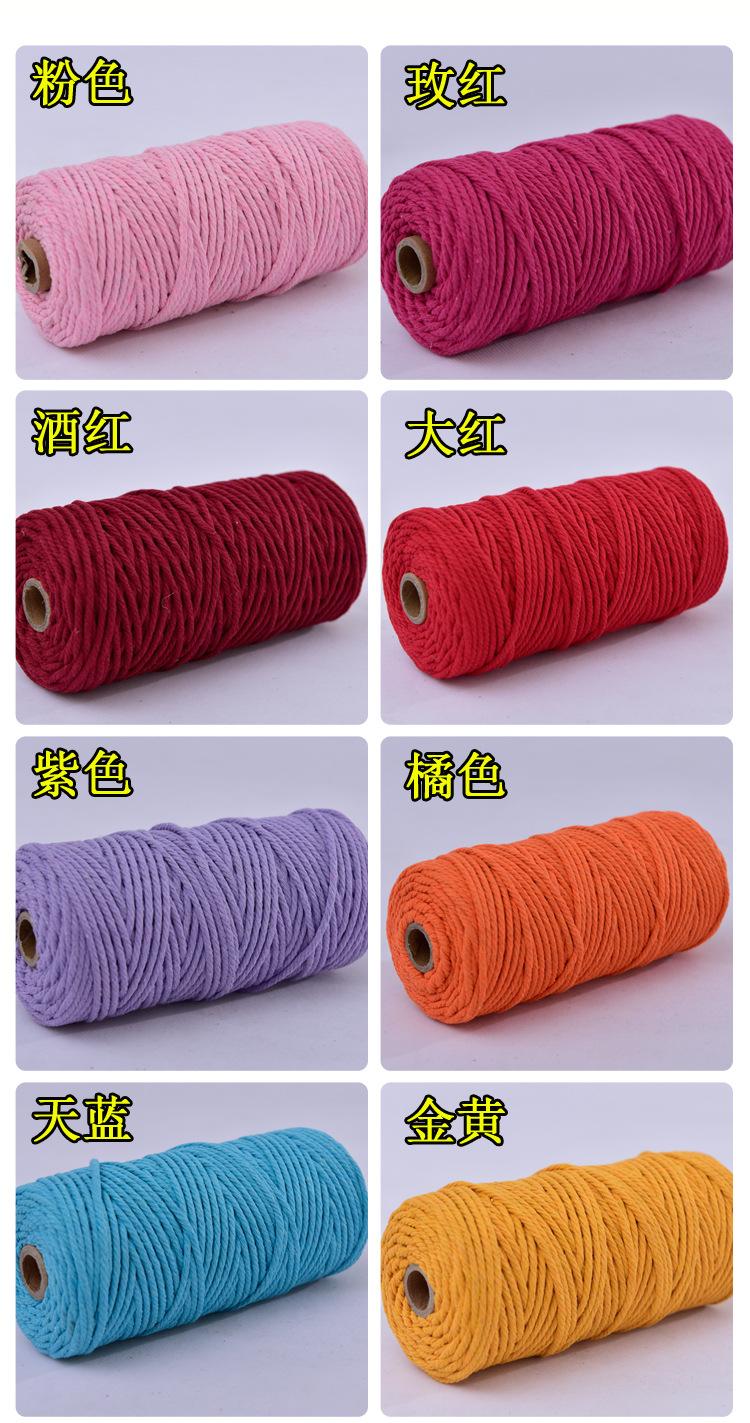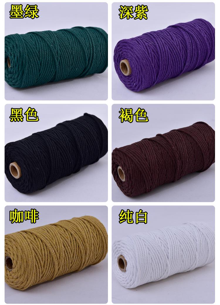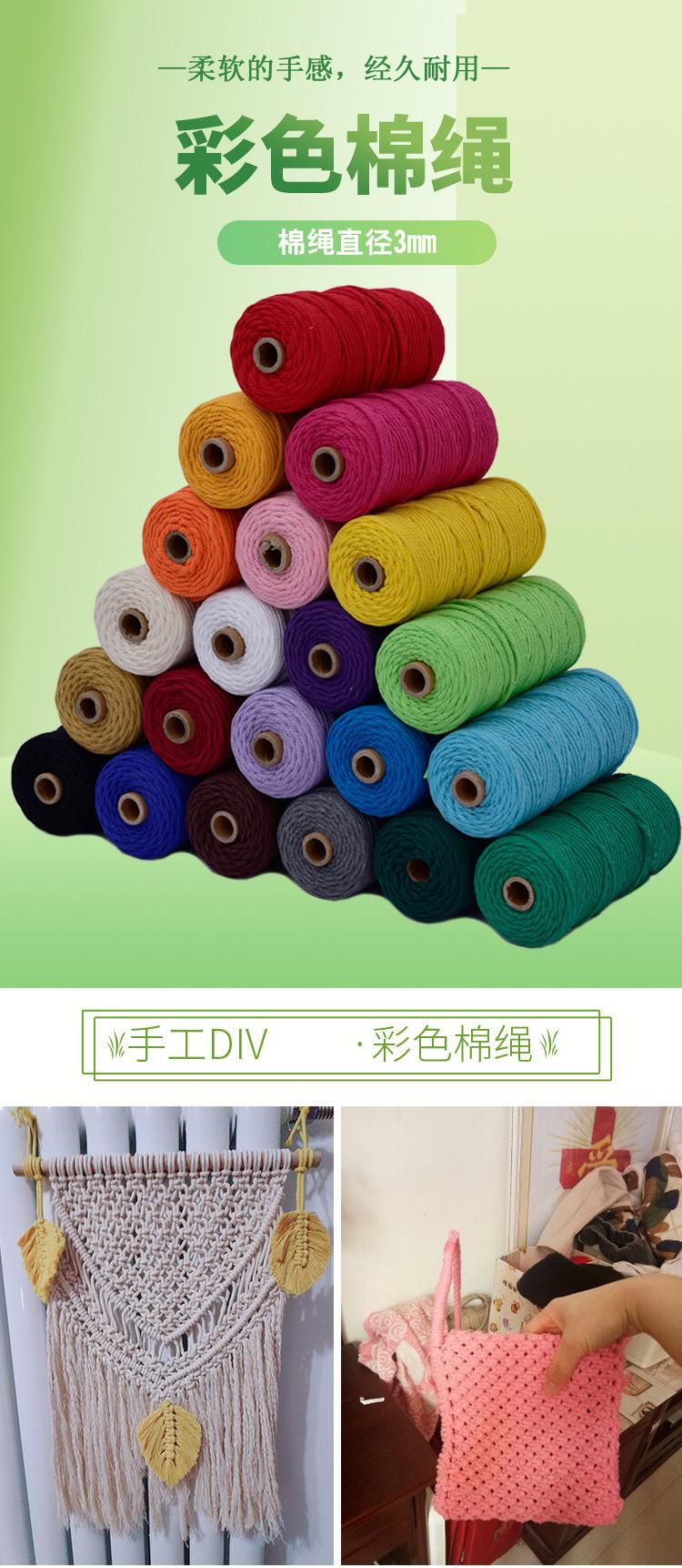 Cuerda de algodón de color, cuerda de algodón de grosor, bolsa de material tejido a mano de bricolaje, cuerda decorativa de 3 mm, cuerda de tapiz, cuerda de atado