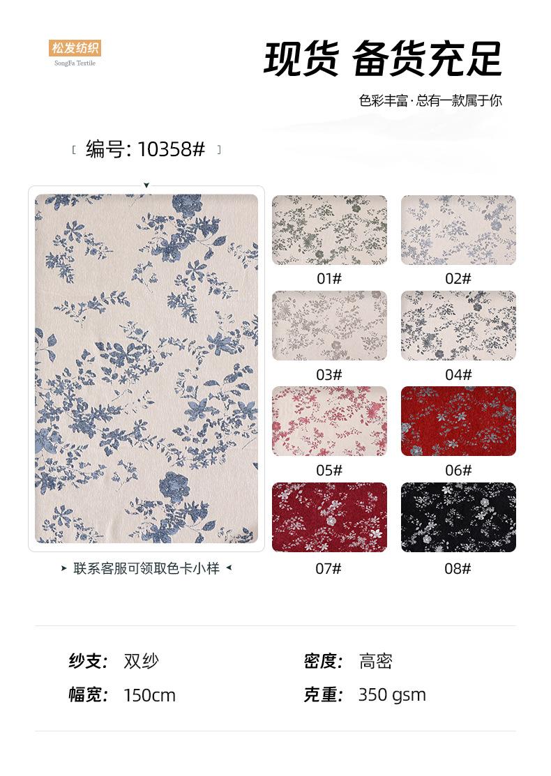 Tela de chenilla con estampado floral clásico, disponible en fábrica, para bolsos, zapatos, sombreros y ropa.