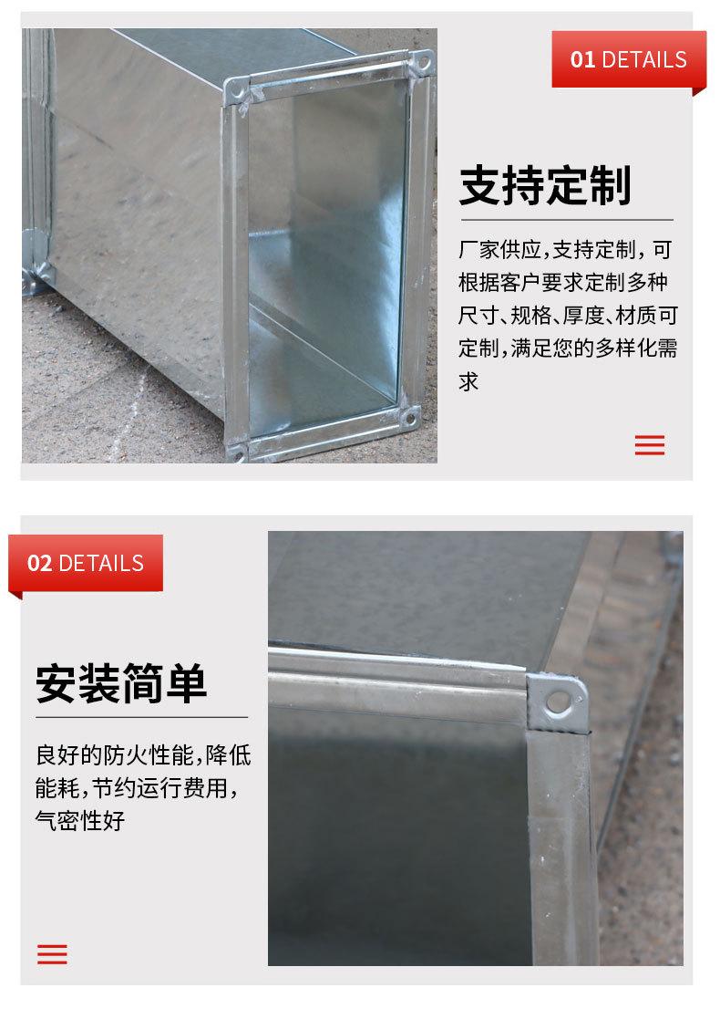 Conducto de Aire Galvanizado Extracción de Humo de Incendio Ventilación Conducto Galvanizado Rectangular Soldado Conducto de Aire Galvanizado Brida de Placa Común Conducto de Aire