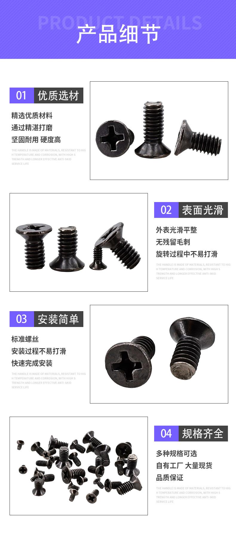 Tornillo pequeño electrónico de cabeza plana negra de acero al carbono con cabeza avellanada en cruz KM, M2-M4, directo de fábrica
