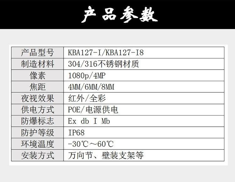 Cámara de seguridad intrínseca para minas Cámara de fibra óptica ignífuga Cámara de vigilancia KBA12 Cámara HD