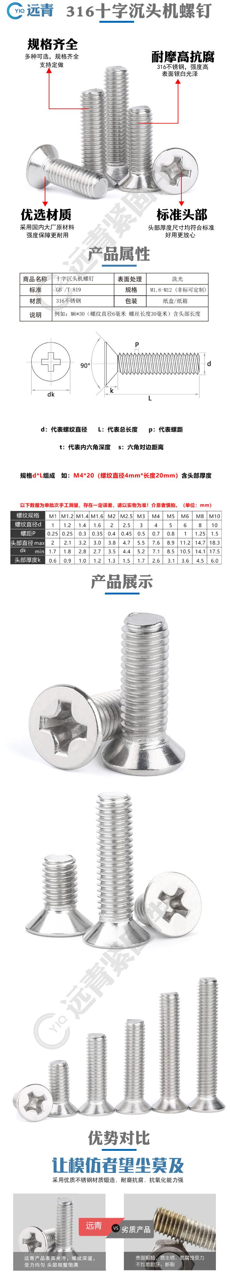 Tornillo de acero inoxidable 316, tornillo de cabeza avellanada Phillips, tornillo para máquina, perno de cabeza plana Daquan M2M3M4M5M6M8