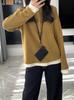 Camiseta de terciopelo de doble cara con cuello alto falso de dos botones y cuello alto para mujer, otoño e invierno, gruesa, lijada, base