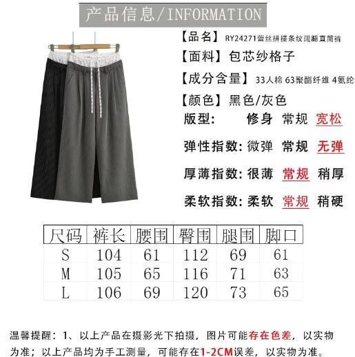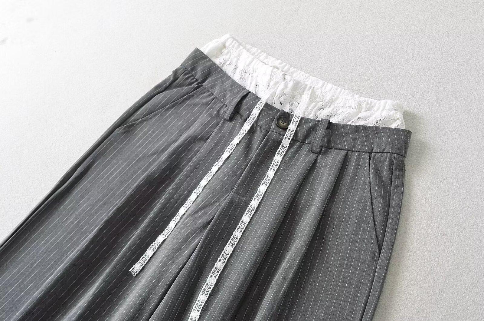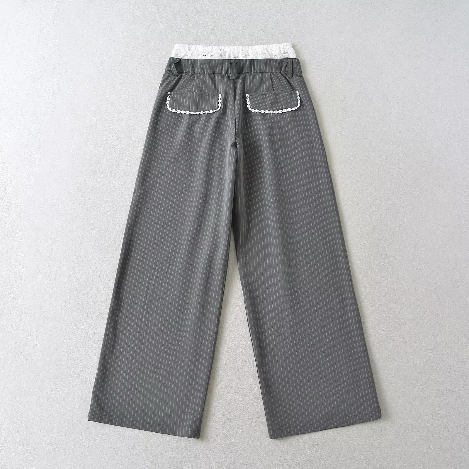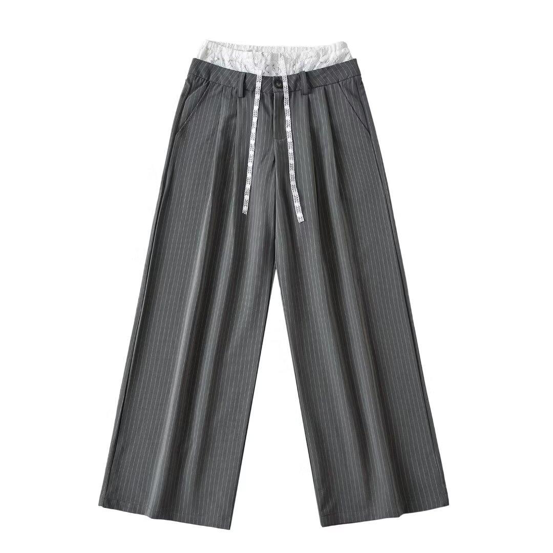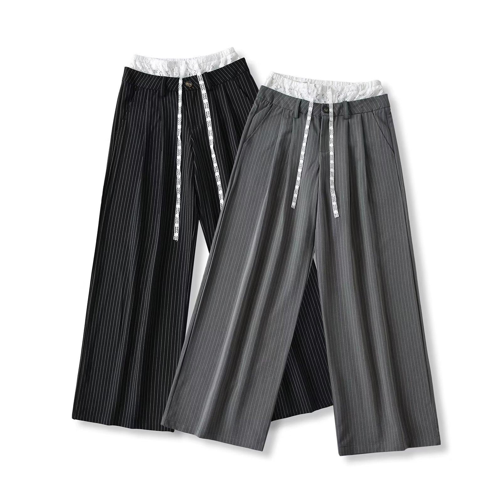 Pantalones anchos, rectos y sueltos con costuras de encaje a rayas, ropa Gongyi