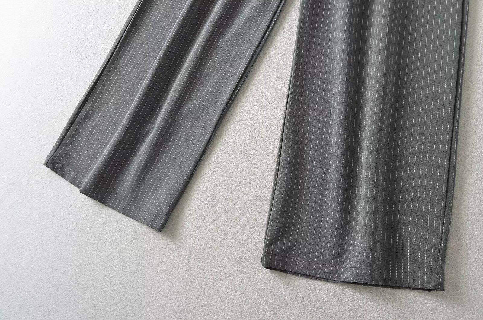 Pantalones de traje casuales con cordón para mujer, estilo europeo y americano, con costuras de encaje, a rayas, pierna ancha, sueltos y rectos, otoño 2024