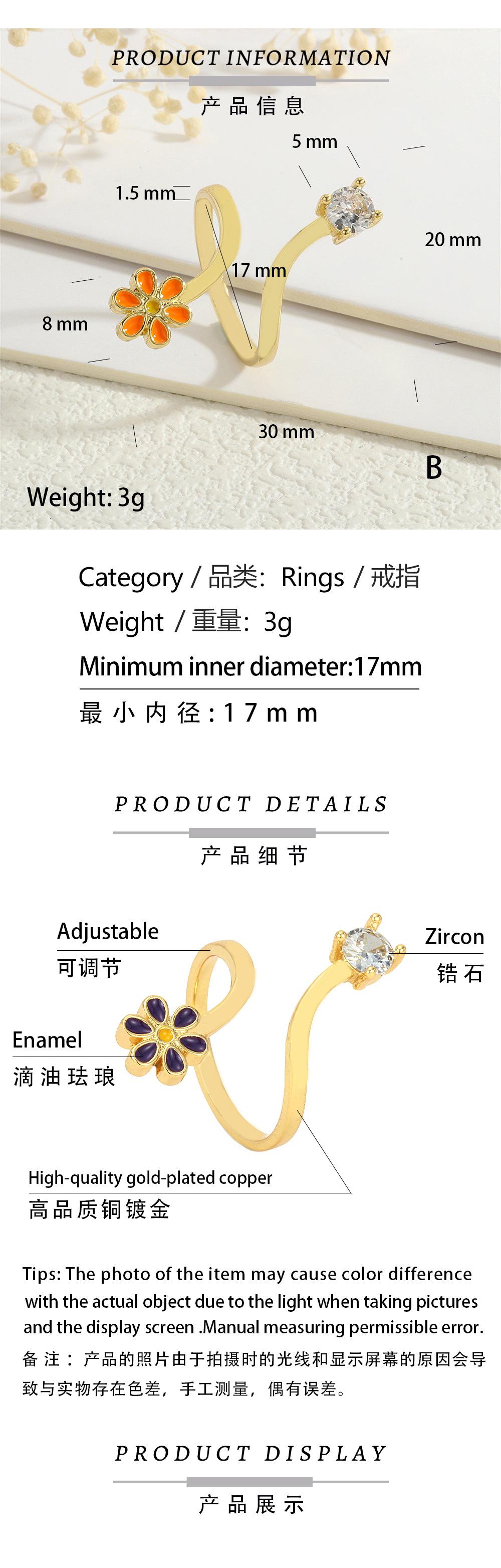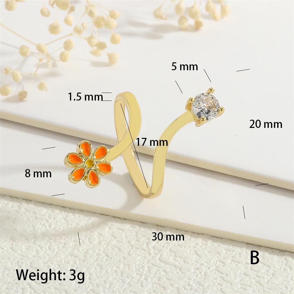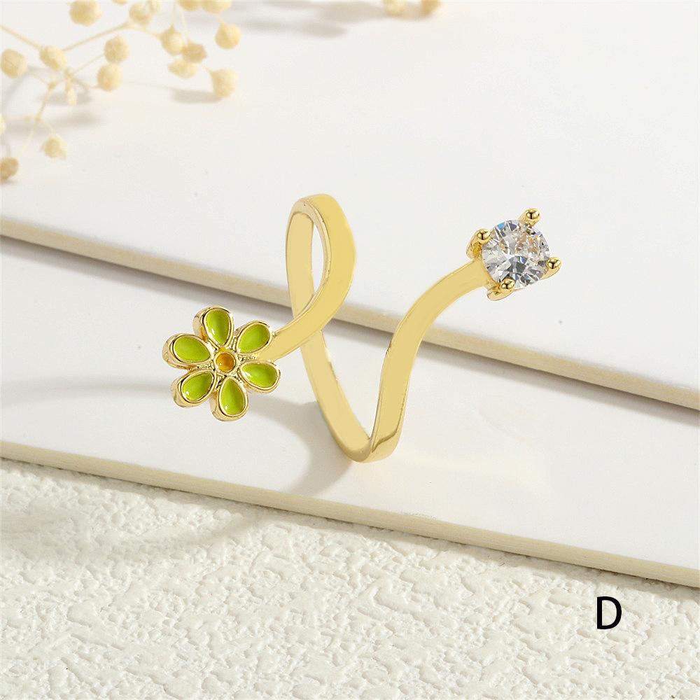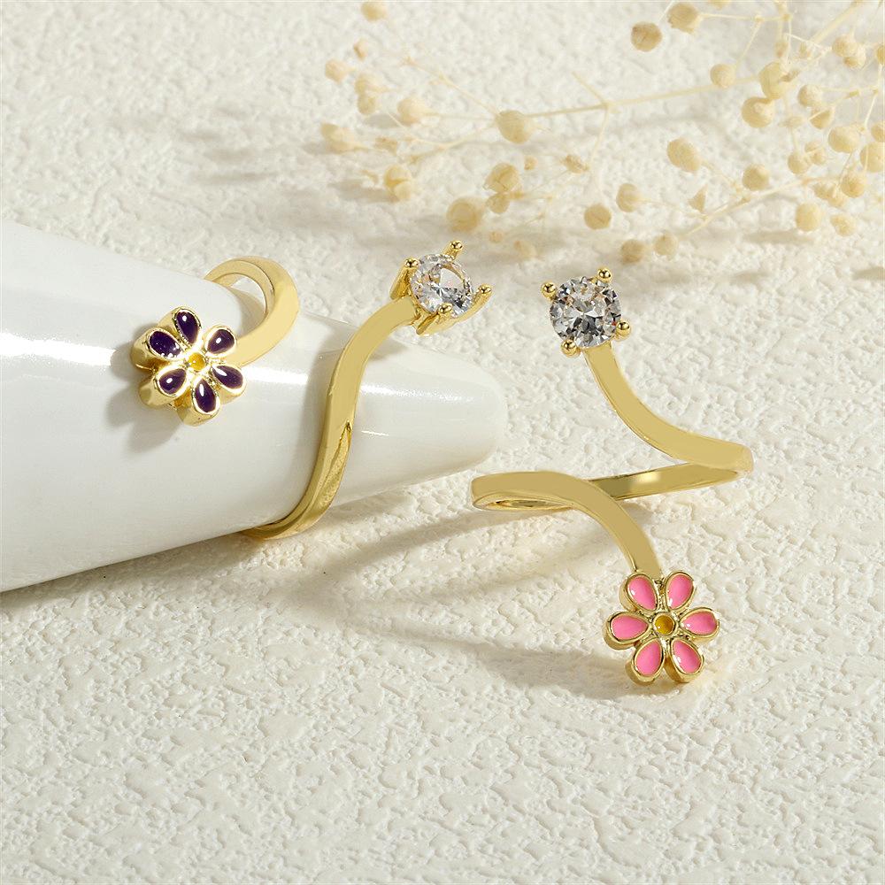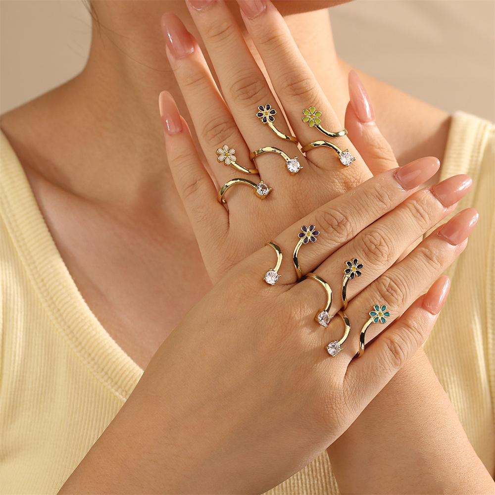 Anillo para Mujer Lujo Ligero Sentido de Alta Gama Ins Estilo Frío Zircón Incrustado con Color Goteo de Aceite Flor Apertura Anillo Simple