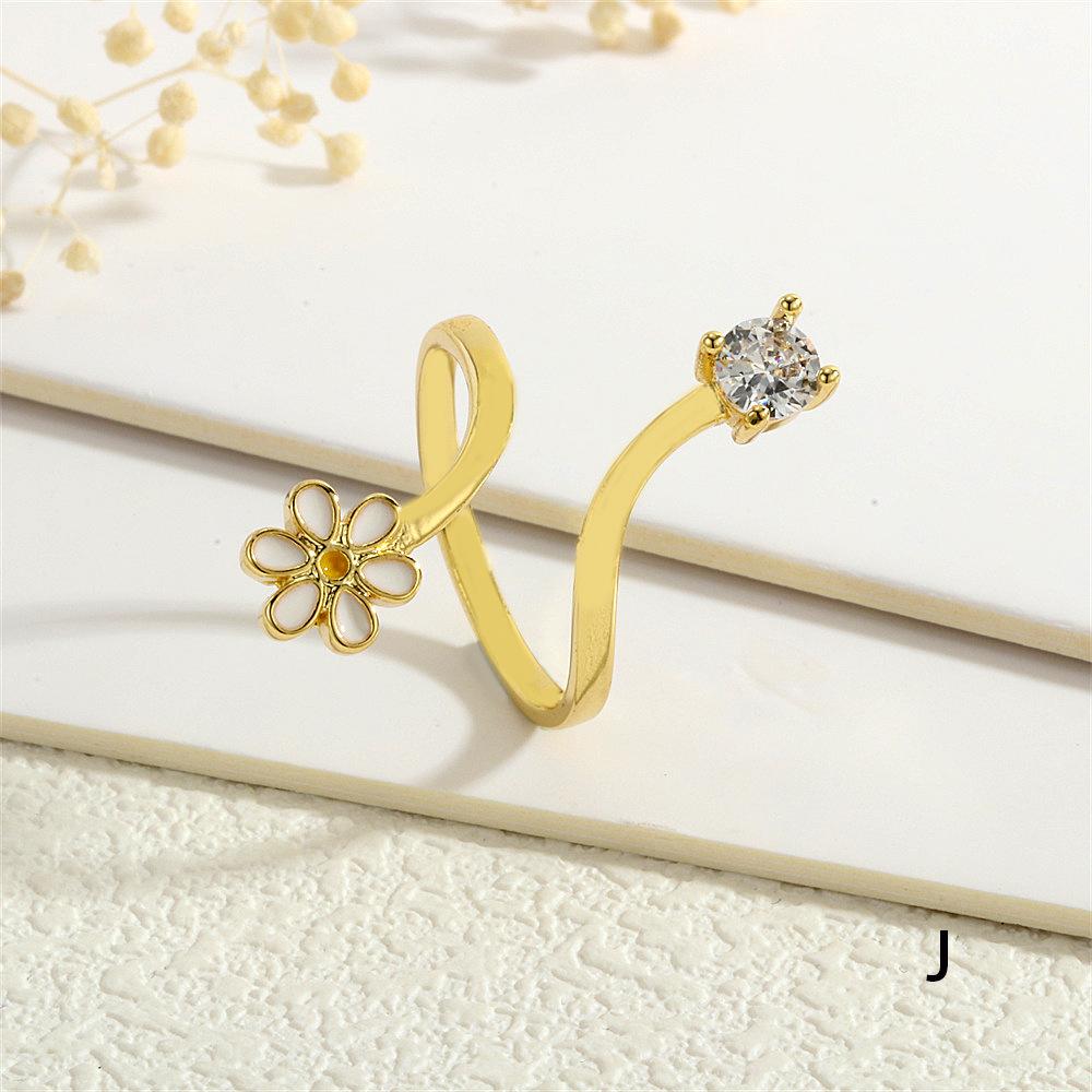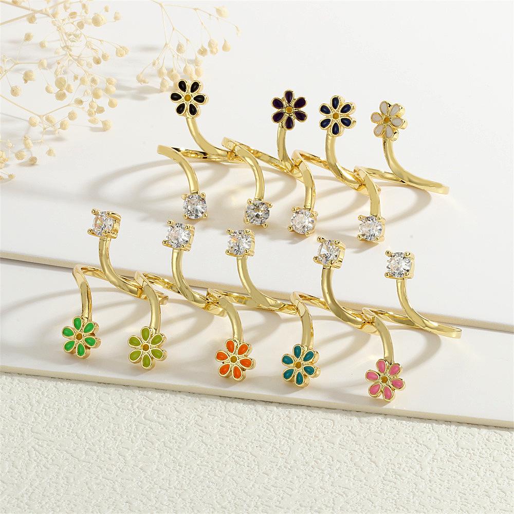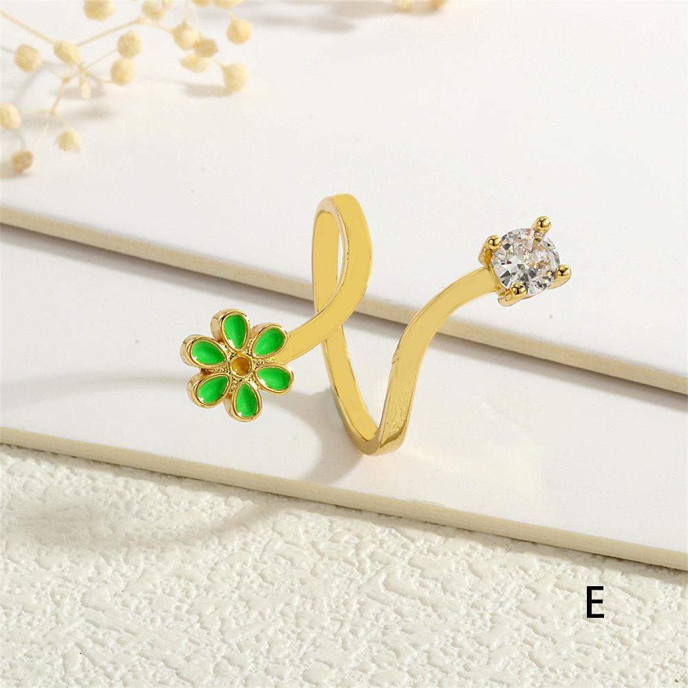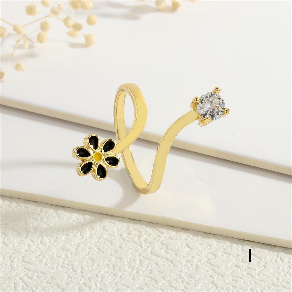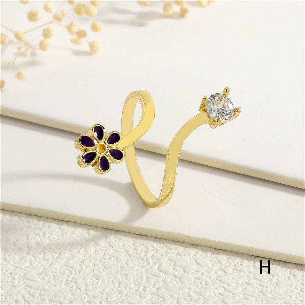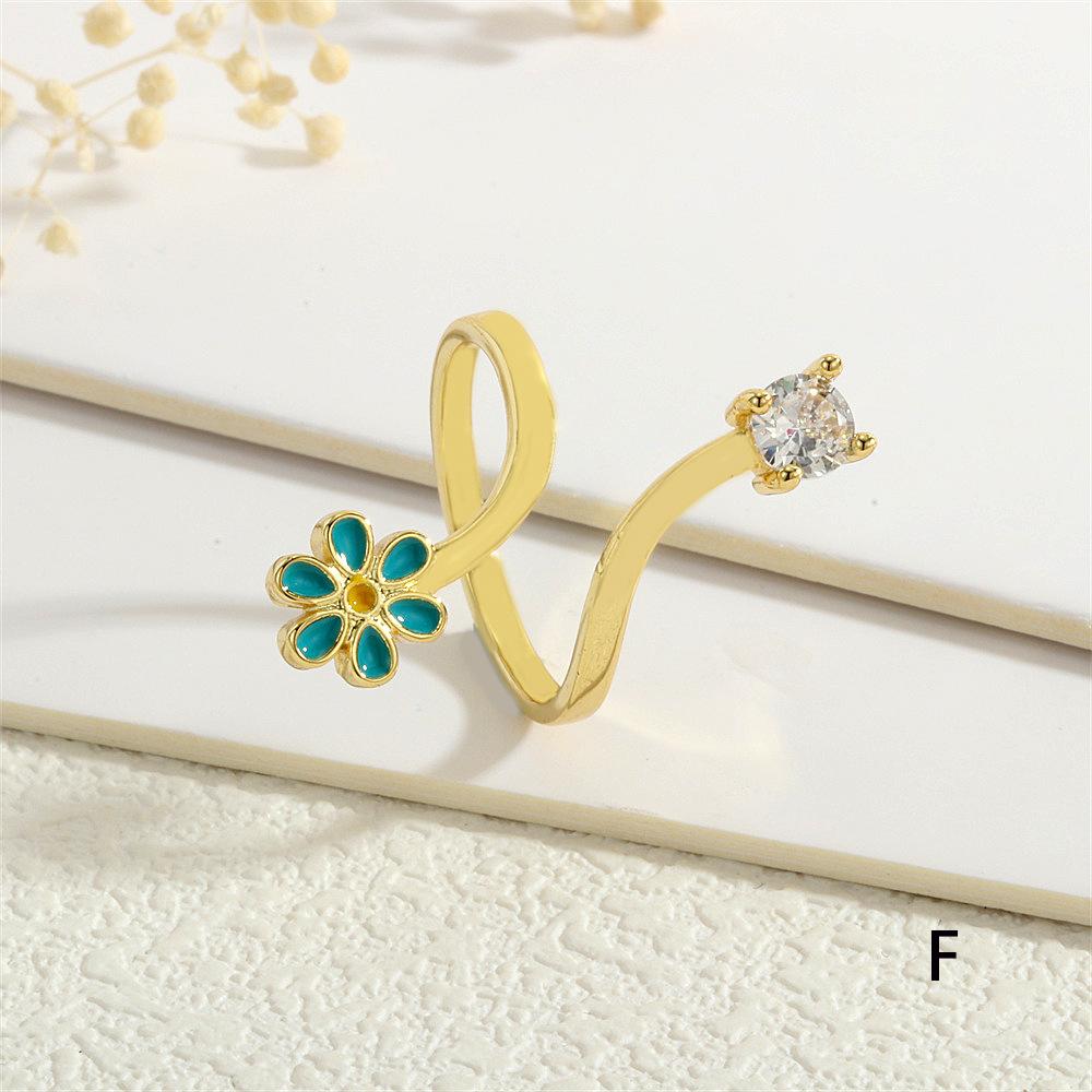 Anillo para Mujer Lujo Ligero Sentido de Alta Gama Ins Estilo Frío Zircón Incrustado con Color Goteo de Aceite Flor Apertura Anillo Simple
