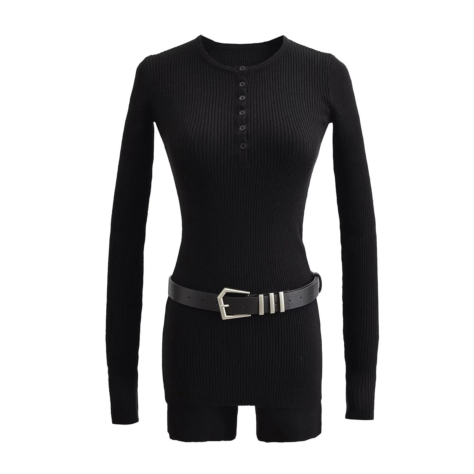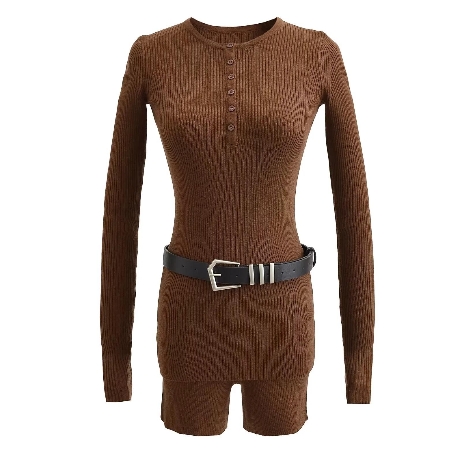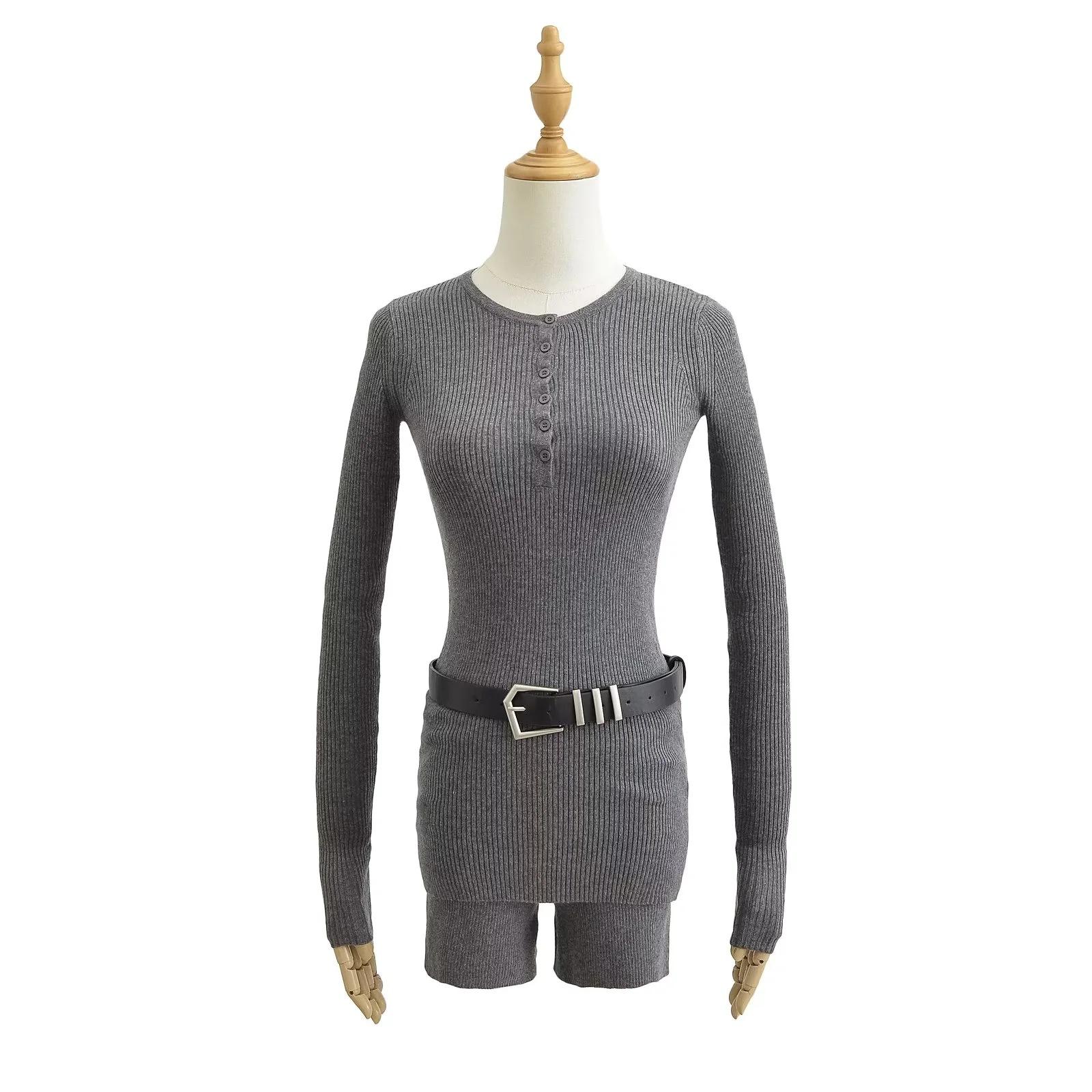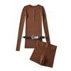 Otoño e Invierno sexy chica caliente cuello en V profundo manga larga top de punto para mujer estilo americano lindo cintura alta shorts ajustados traje de dos piezas