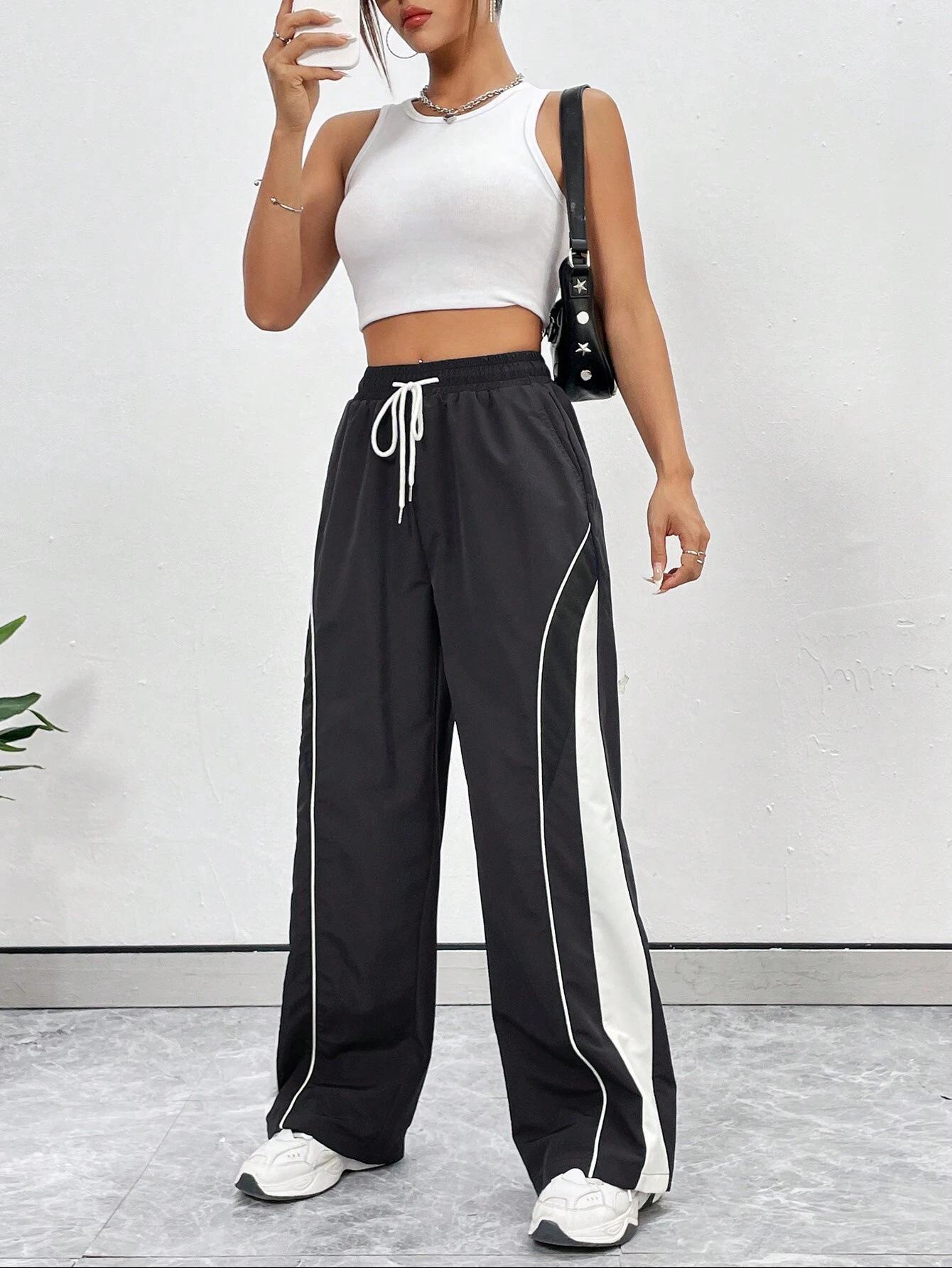 Pantalones casuales holgados y adelgazantes de estilo europeo y americano para hombre y mujer, con estampado de hip-hop y costuras de rayas, a la moda urbana, 2025