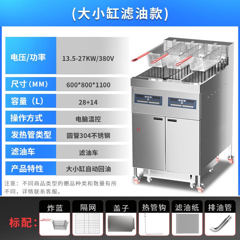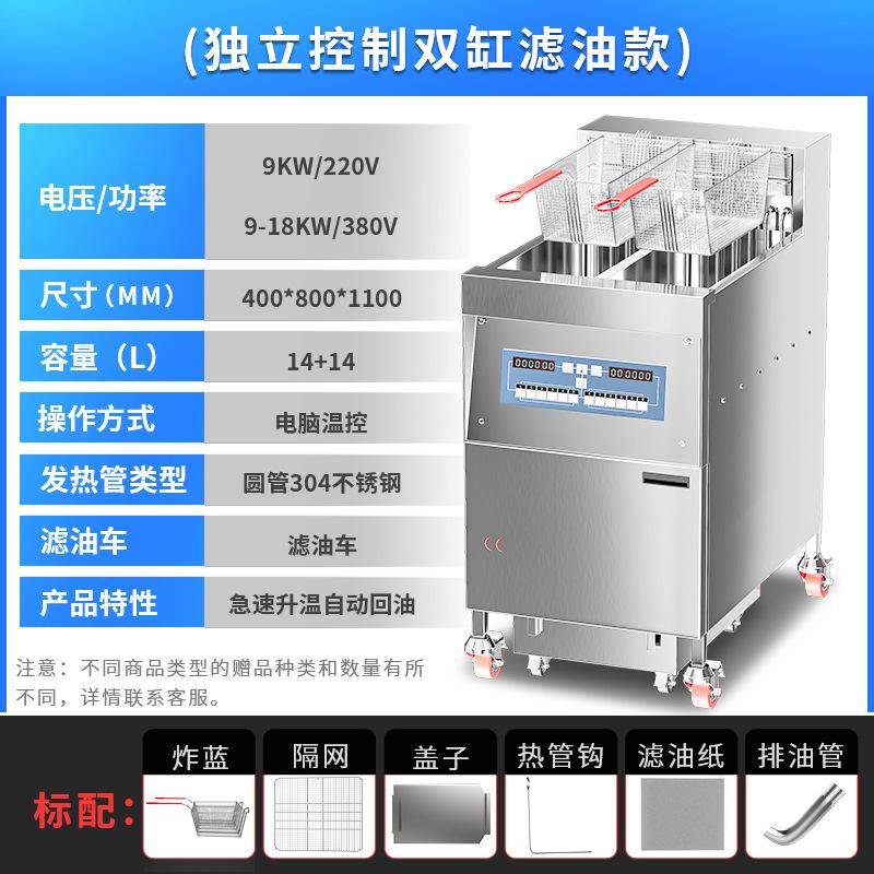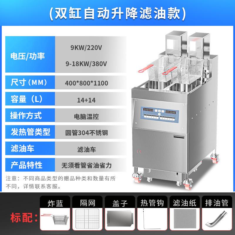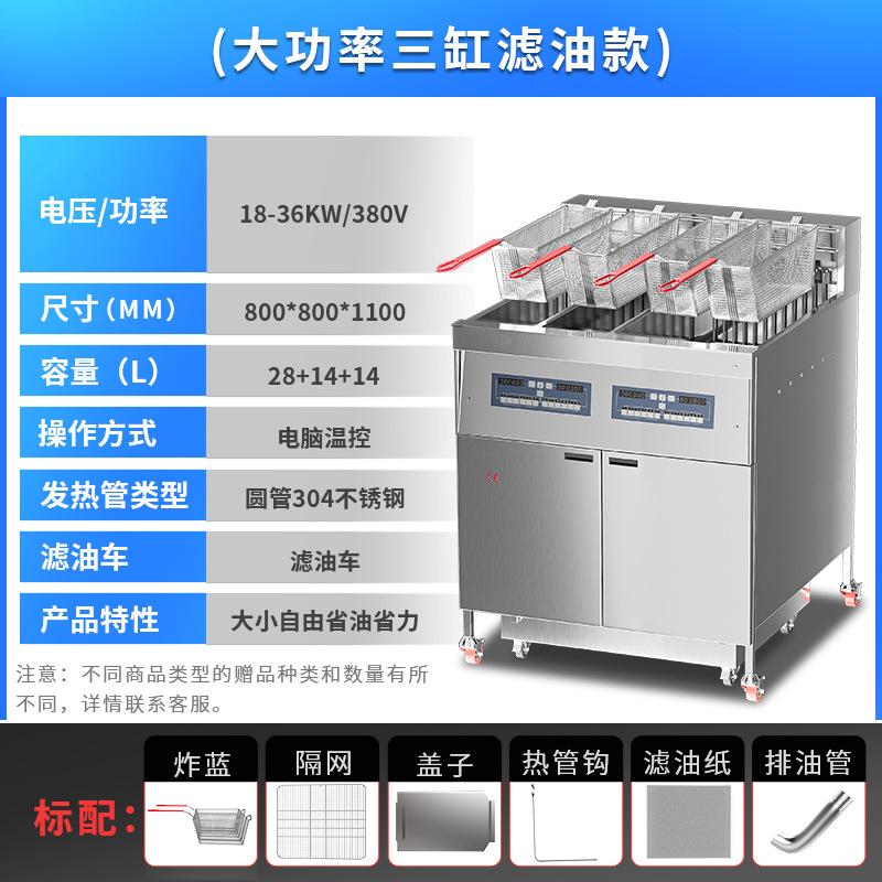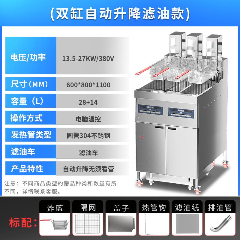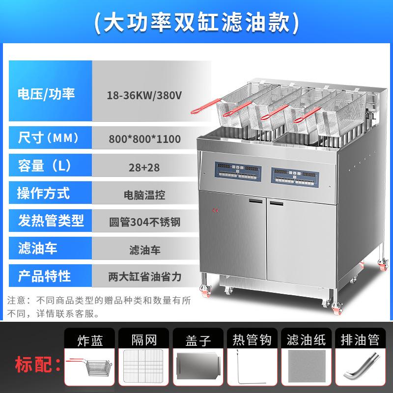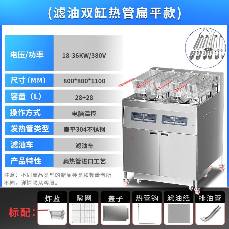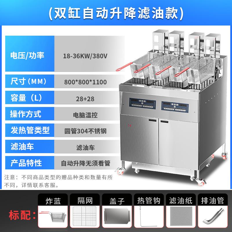 Freidora Eléctrica de Doble Cilindro y Cuatro Pantallas Comercial de Tres Ranuras con Filtro de Aceite Calentamiento Eléctrico Gran Capacidad Freidora Automática Ajustable de Fábrica