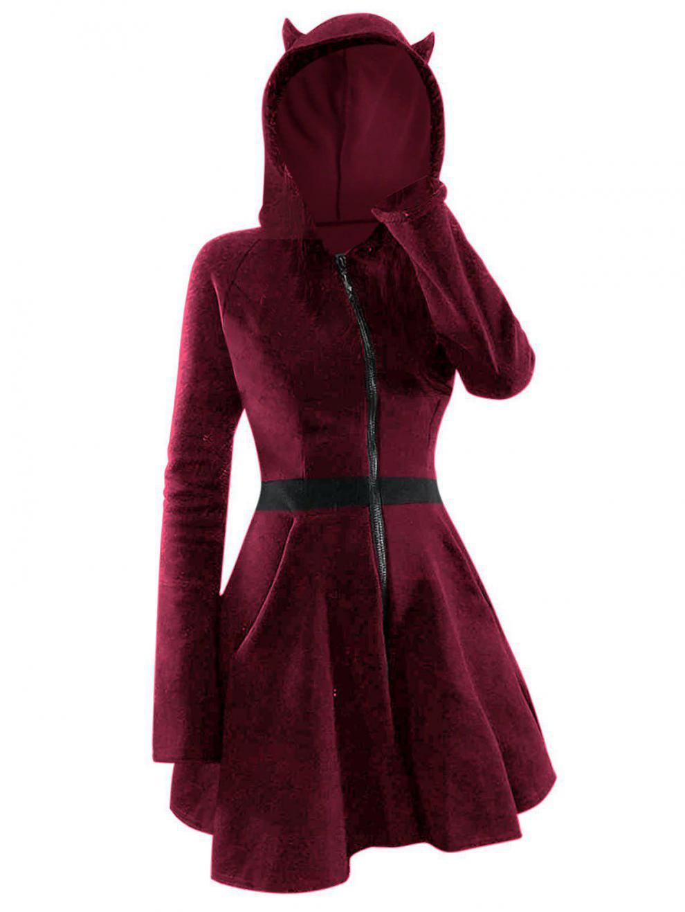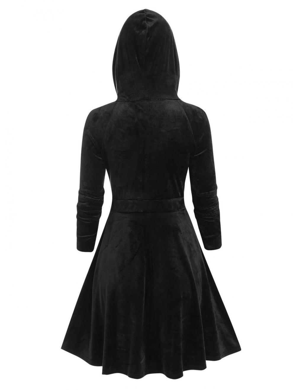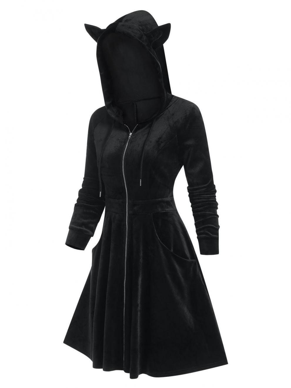 Vestido ajustado de terciopelo dorado con orejas de gato, manga larga y capucha, estilo gótico, con costuras europeas y americanas, para mujer, talla grande