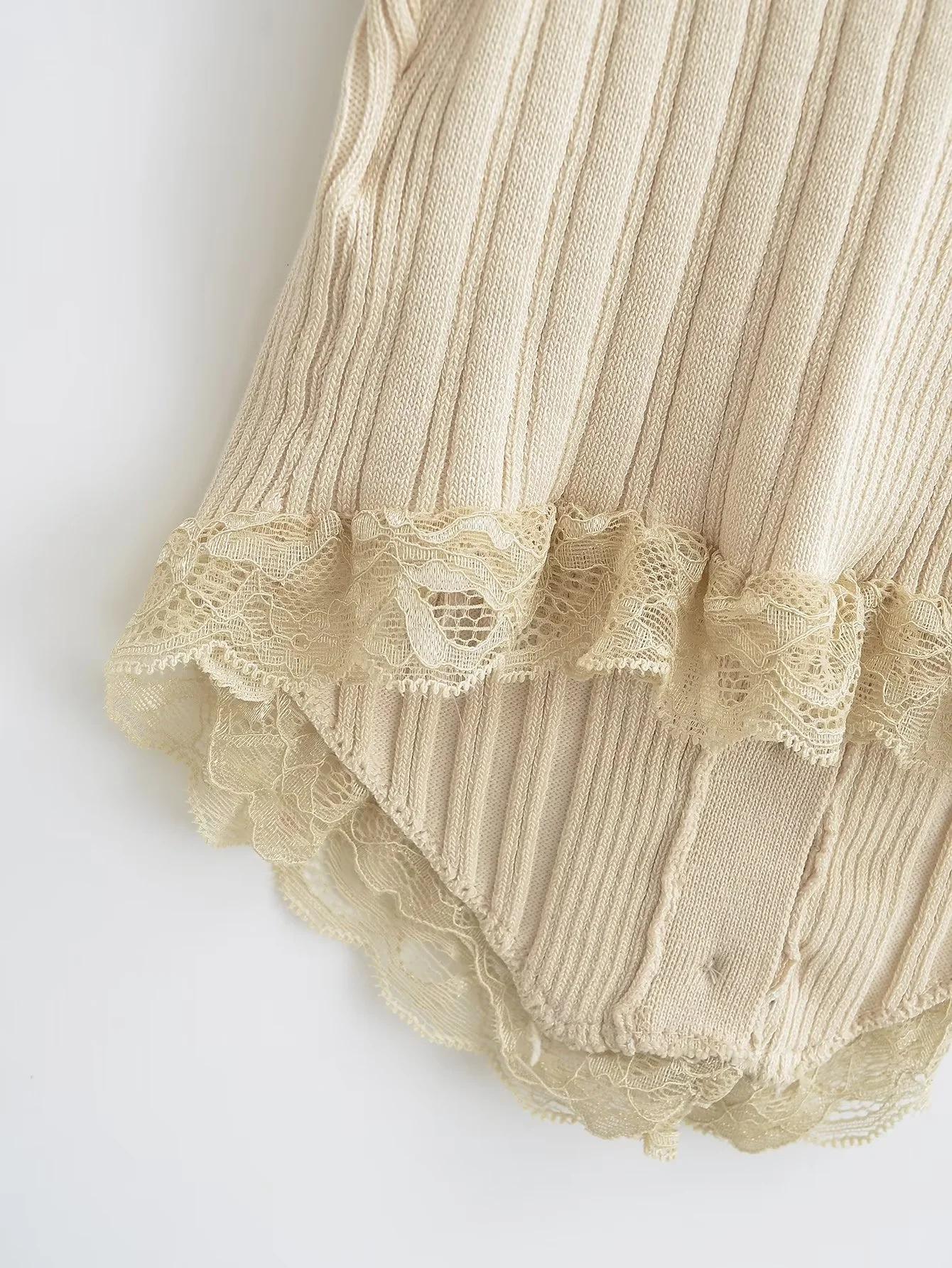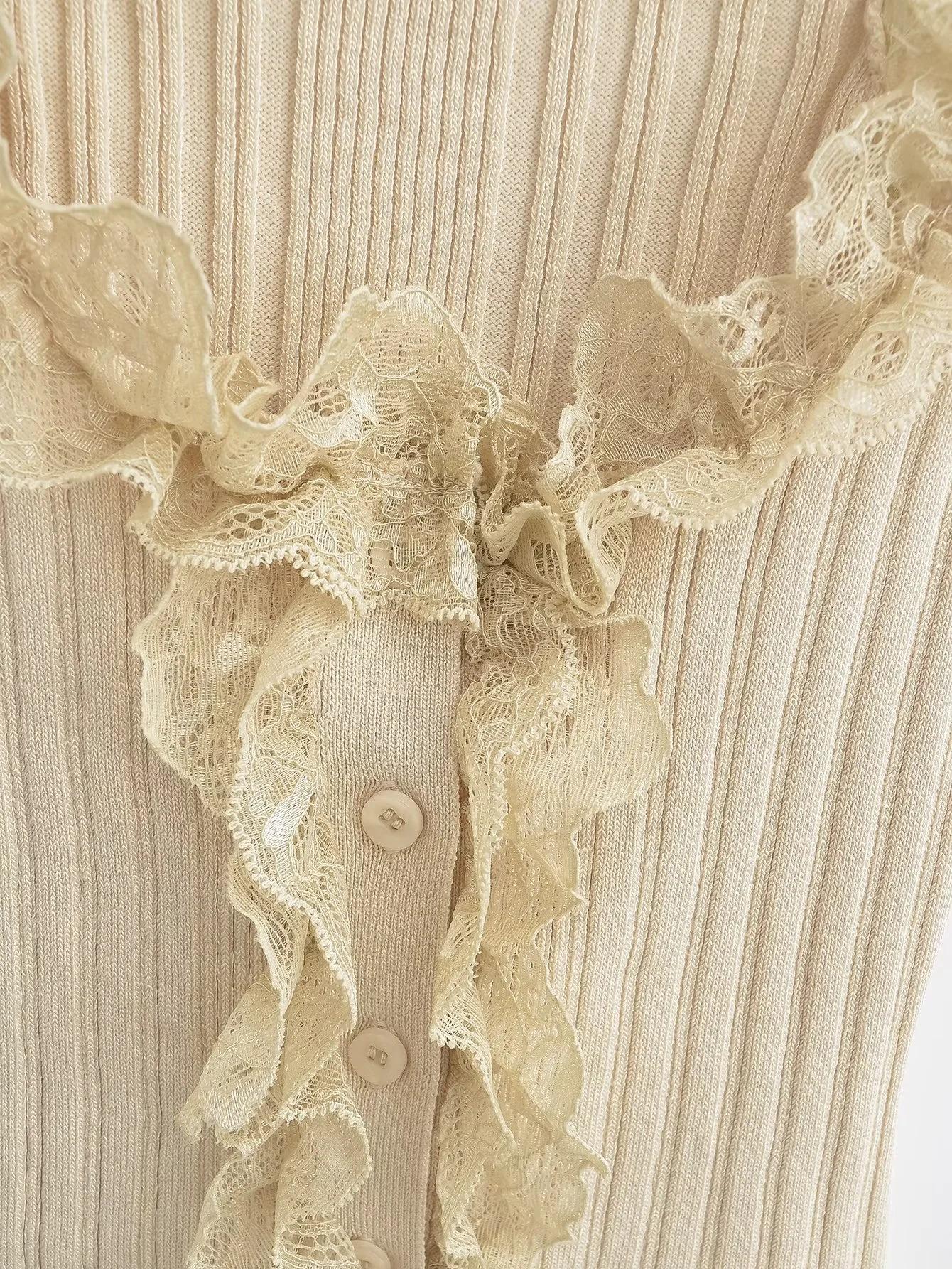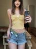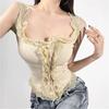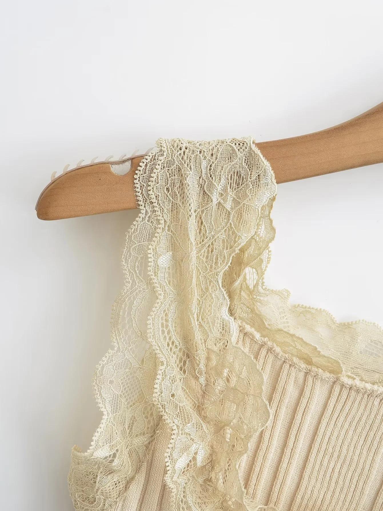Chaleco sin mangas de encaje sexy de estilo dulce y picante de verano 2024 para mujer, nuevo estilo de deseo puro, top de punto con tiras interiores