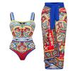 Traje de baño de dos piezas nuevo de talla grande en stock 2025 europeo y americano, traje de baño ajustado para mujer, vestido de gasa