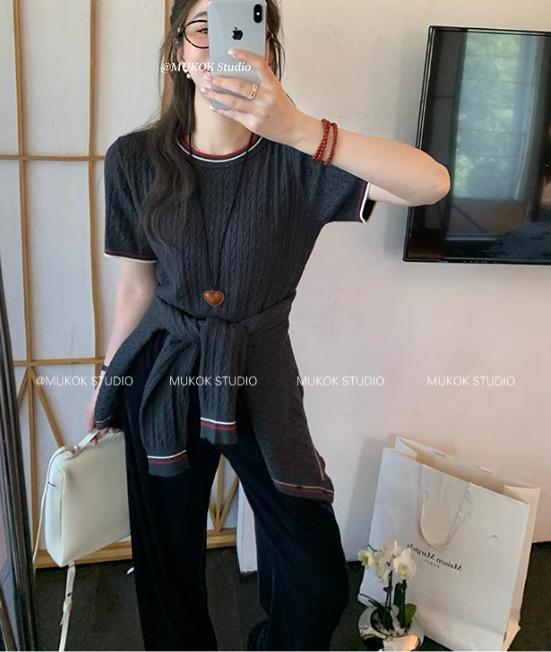 Short sleeves, Skirt, Cardigan, Three piece set