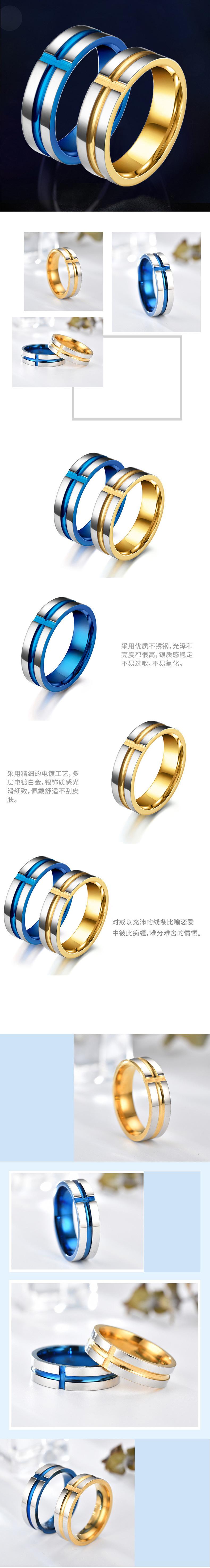 Anillo de cruz de acero inoxidable dorado de moda europea y americana, anillo de acero de titanio de metal creativo para amantes clásicos, venta al por mayor