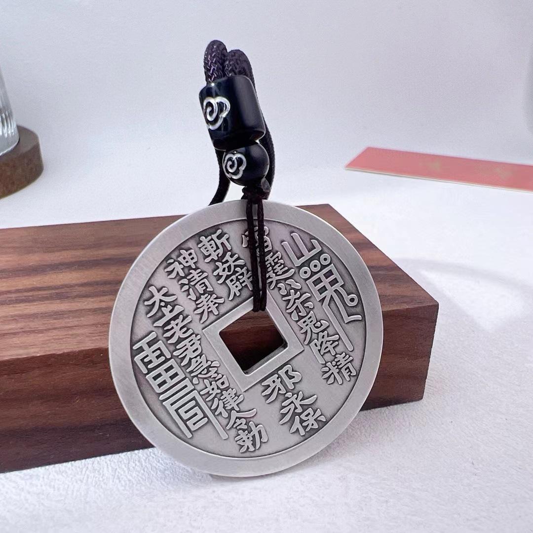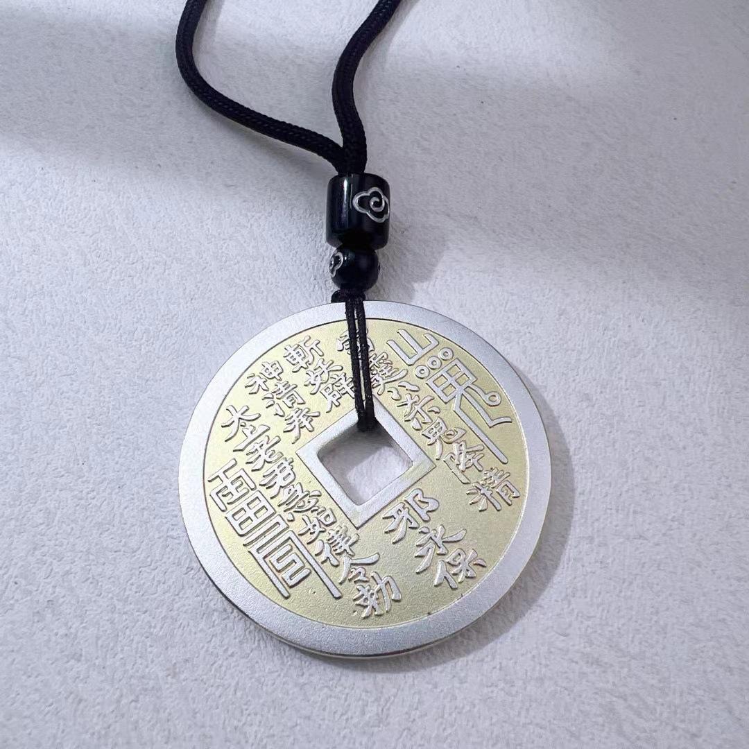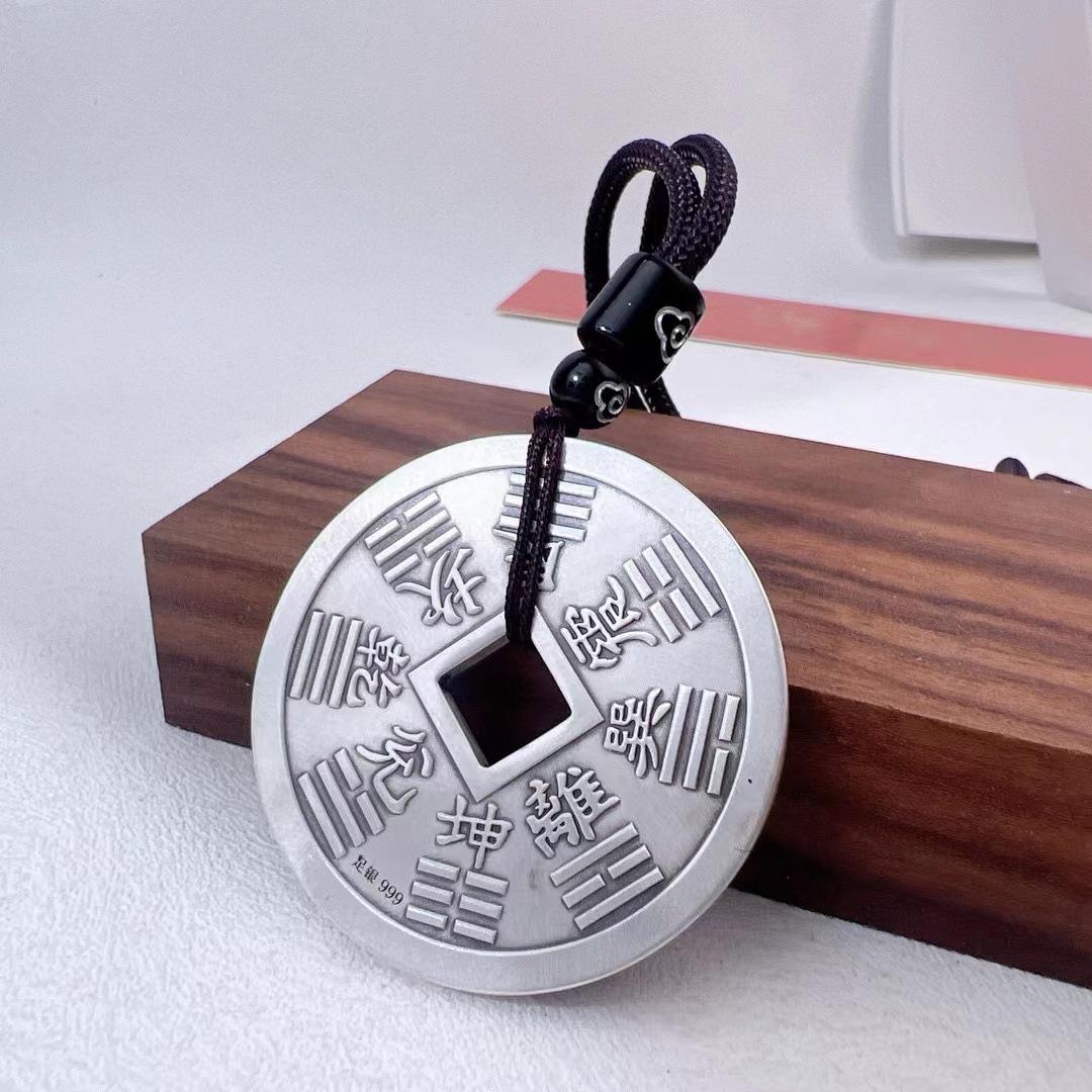 Pie Plata 999 Plata Esterlina Montaña Fantasma Gastando Dinero para Rastrear Colgante de Oro Cobre Marca Bagua Retro Colgante Guofeng Pieza de Mano Adorno Colgante