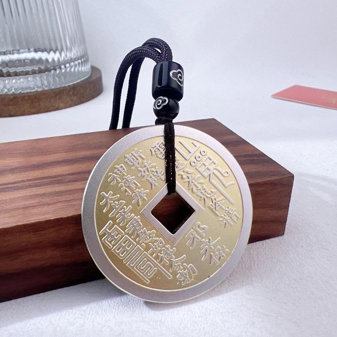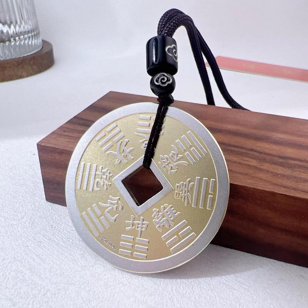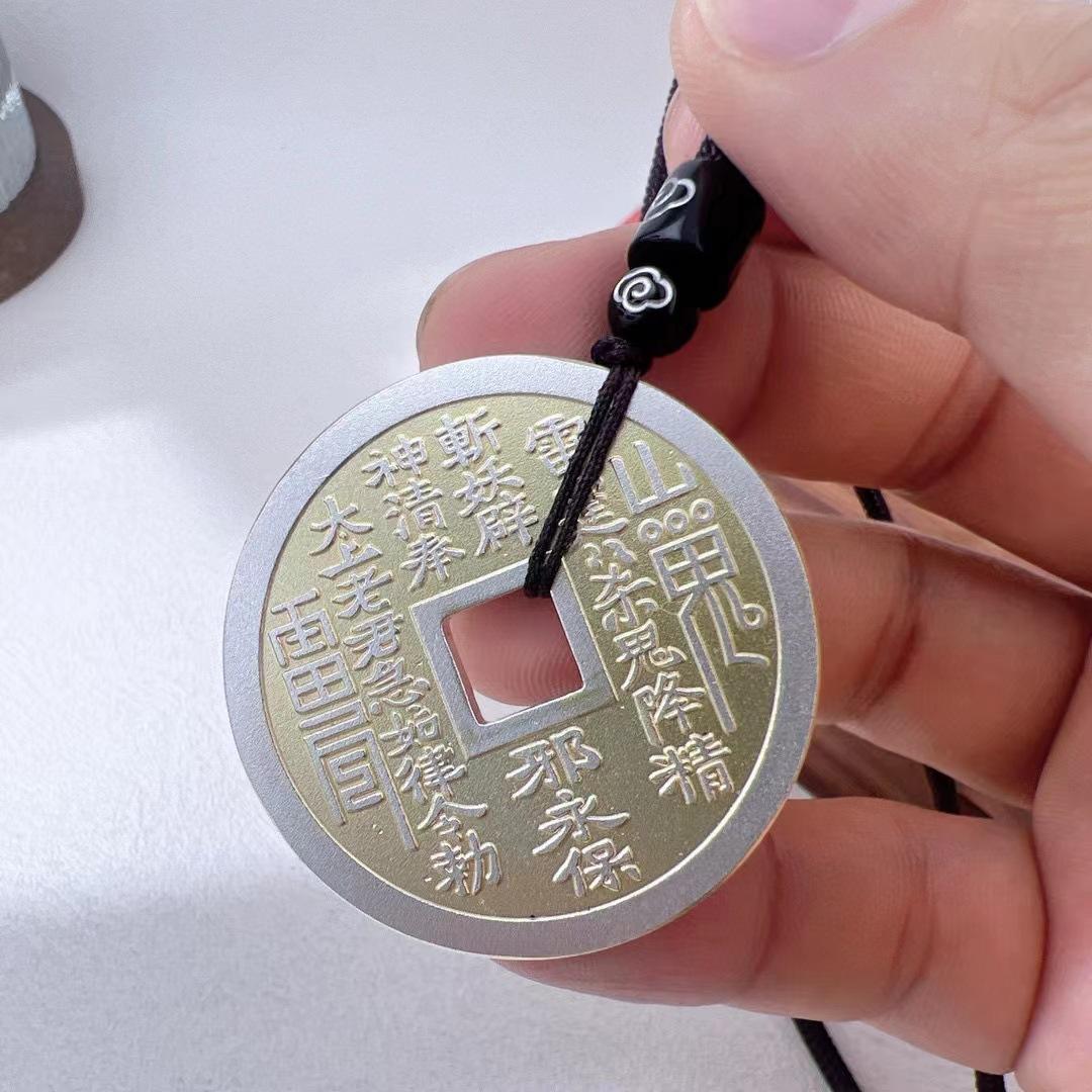 Pie Plata 999 Plata Esterlina Montaña Fantasma Gastando Dinero para Rastrear Colgante de Oro Cobre Marca Bagua Retro Colgante Guofeng Pieza de Mano Adorno Colgante