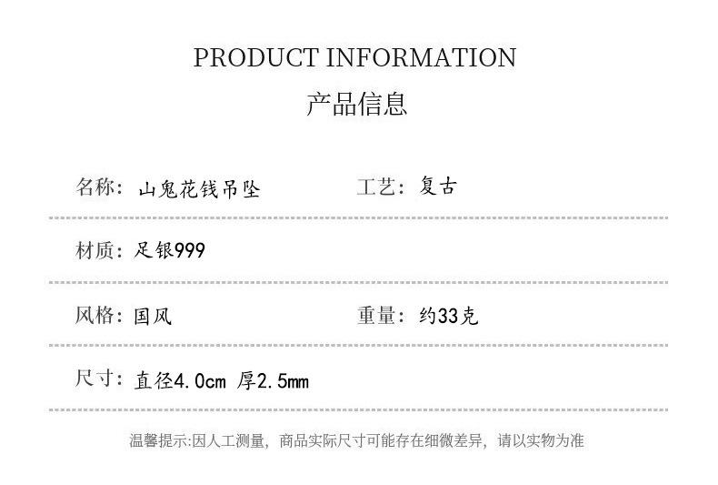 Retro mountain ghost pendant about 30 grams Pure silver 999