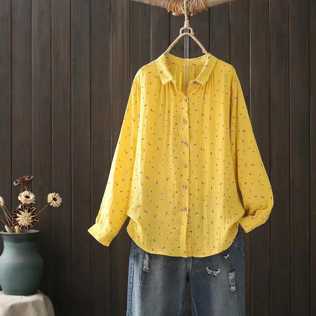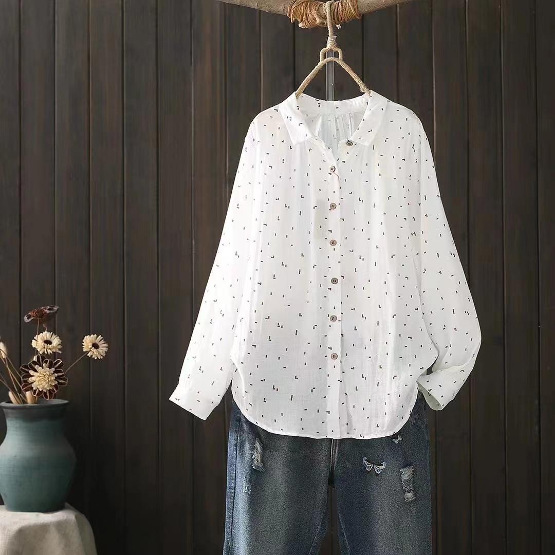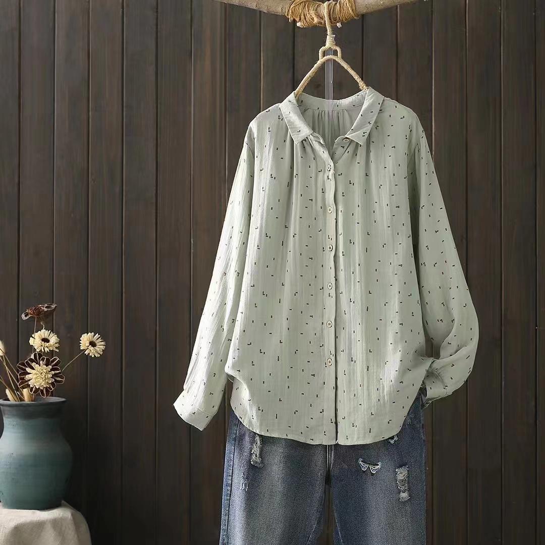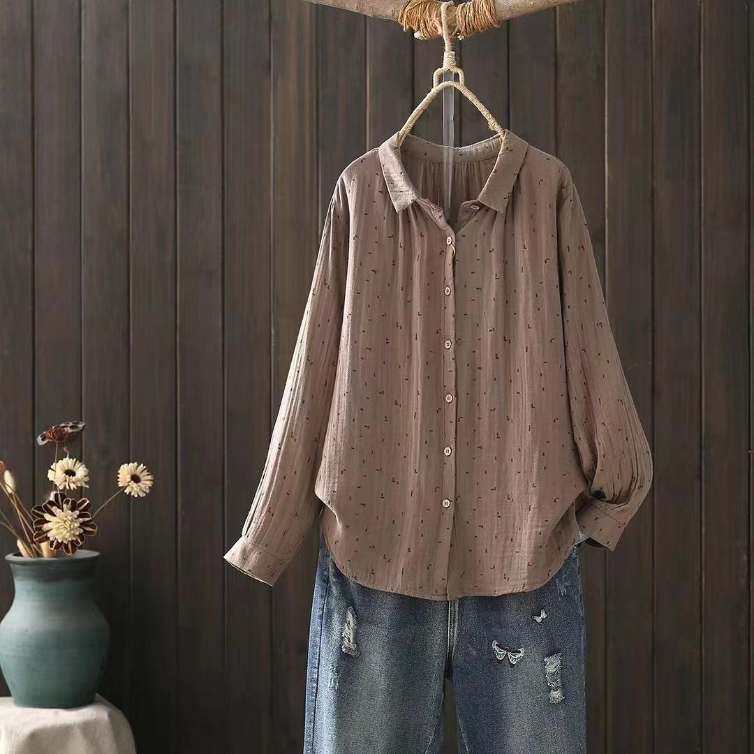 Camisa estampada de manga larga elegante retro para mujer primavera 2024 nueva camisa informal holgada de nicho para uso interior