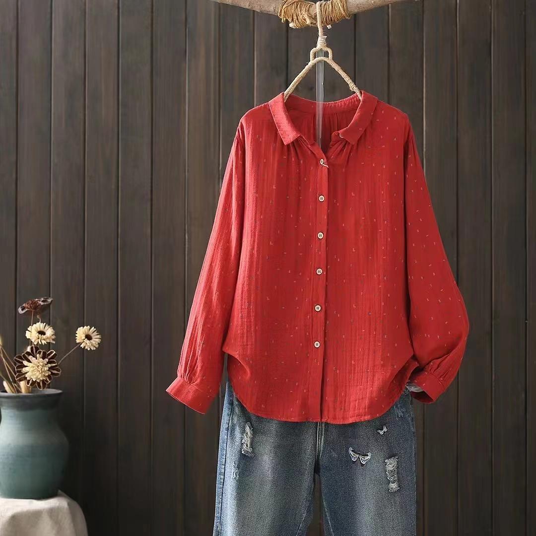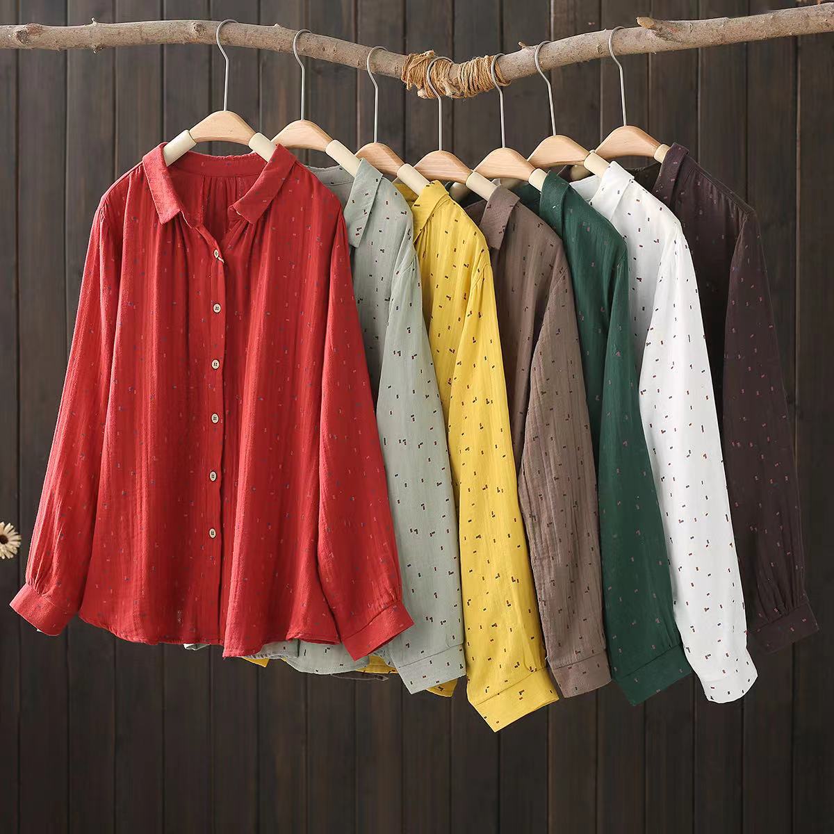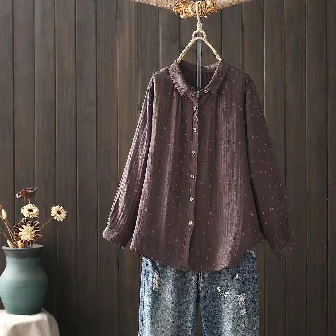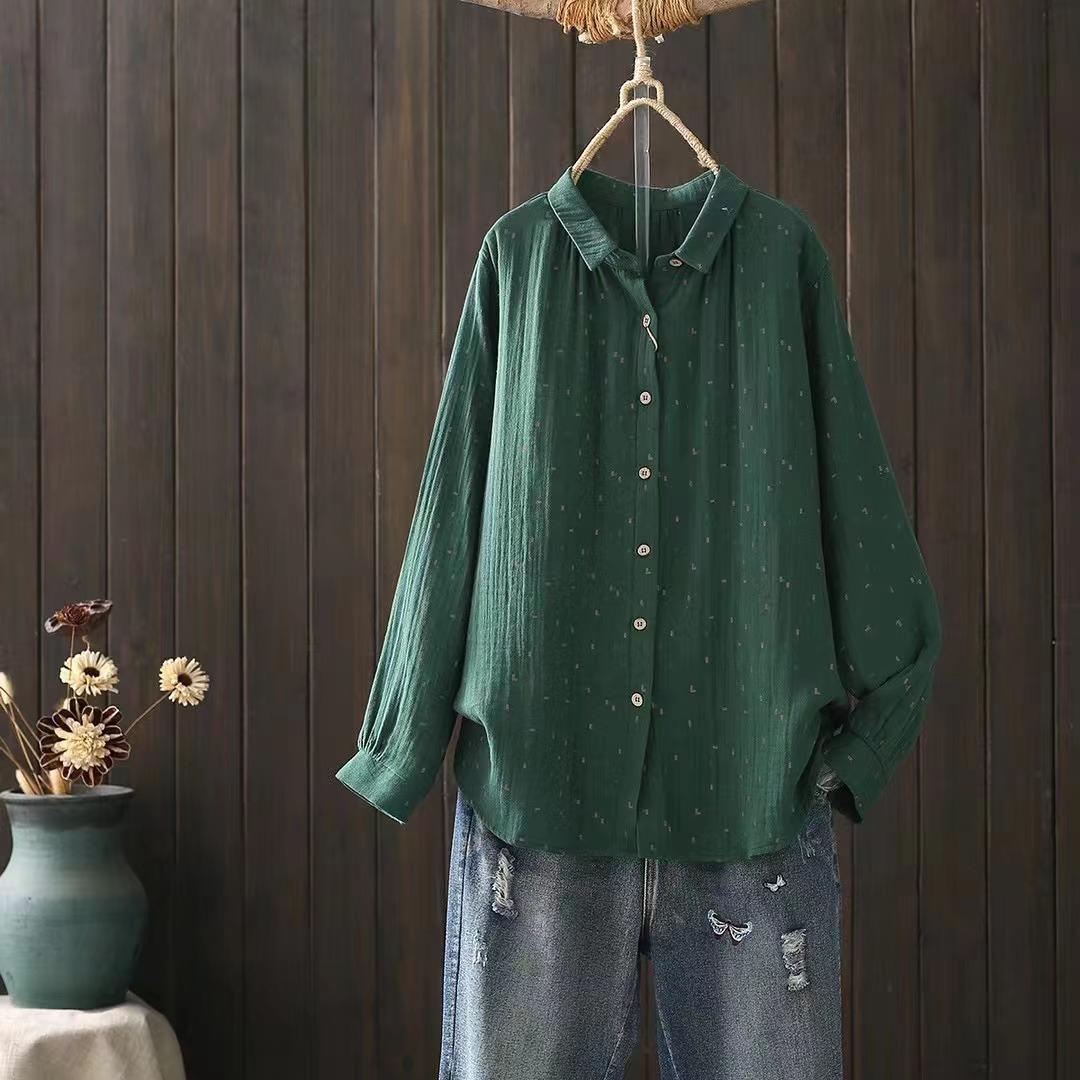 Camisa estampada de manga larga elegante retro para mujer primavera 2024 nueva camisa informal holgada de nicho para uso interior