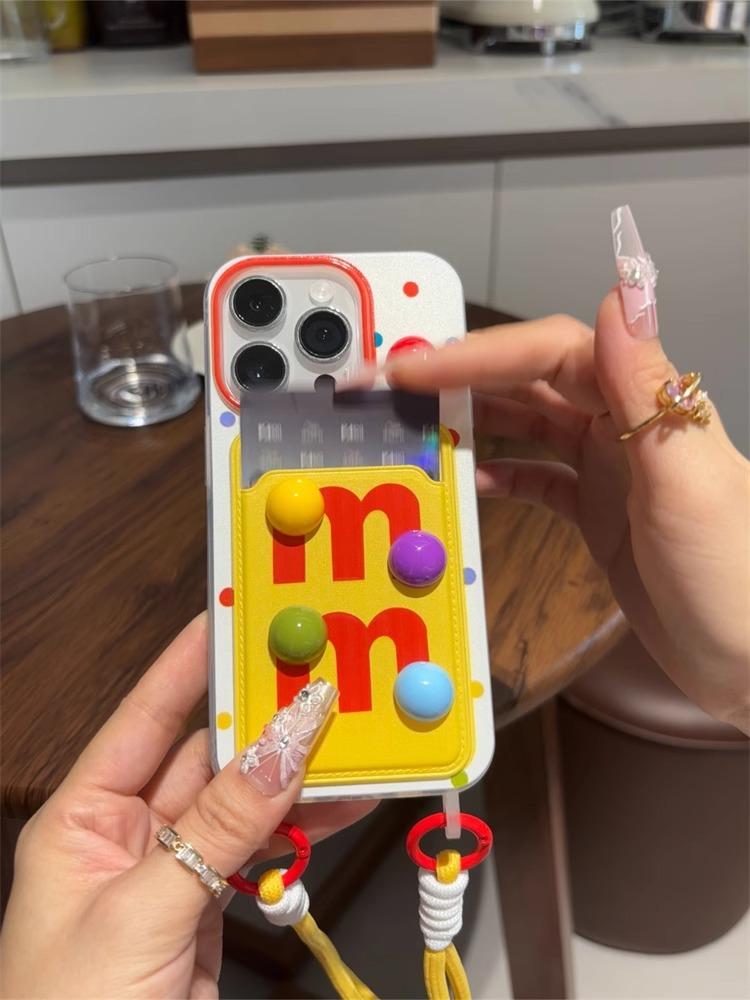 Estuche para teléfono móvil con diseño de tarjeta de frijoles estéreo a color M para iPhone 16 Pro Max, Apple 15/13, nuevo 12, cordón 11, creativo 14